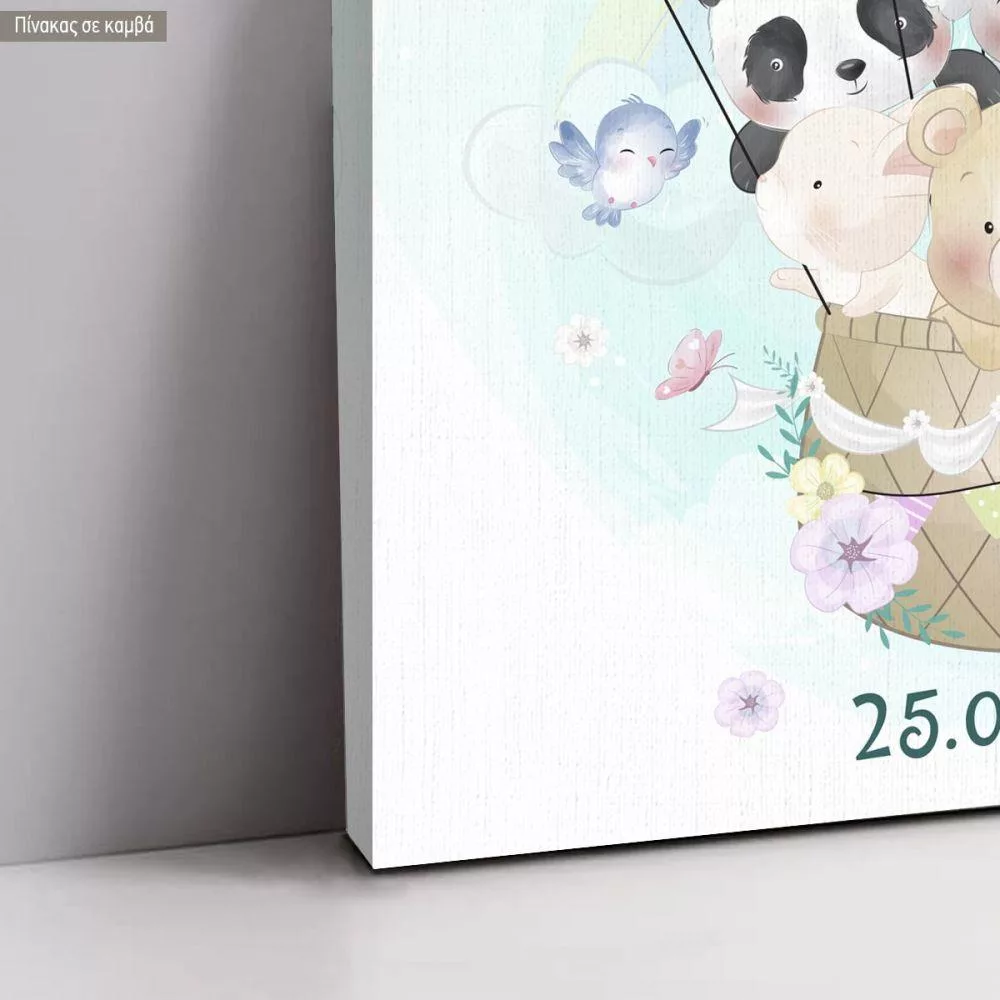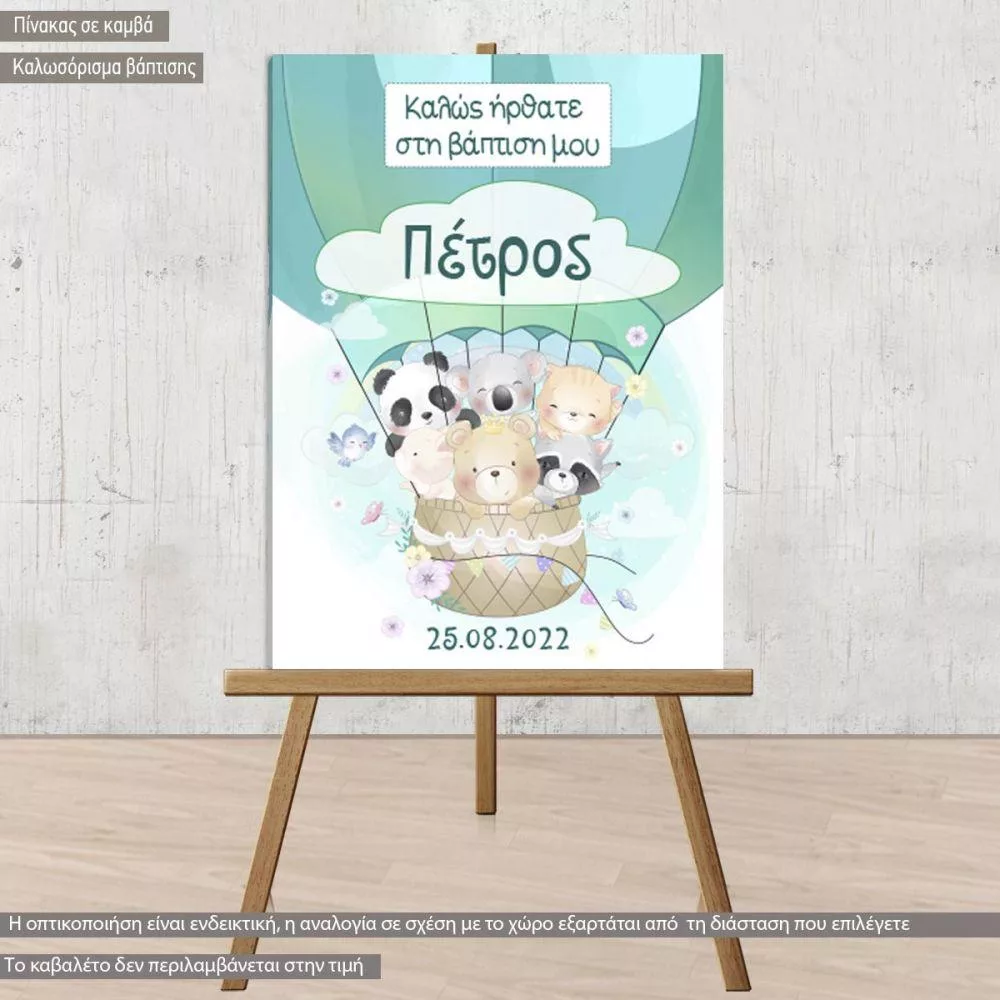 Πίνακας σε καμβά Καλώς ήρθατε στη βάπτιση μου, Ζωάκια σε αερόστατο