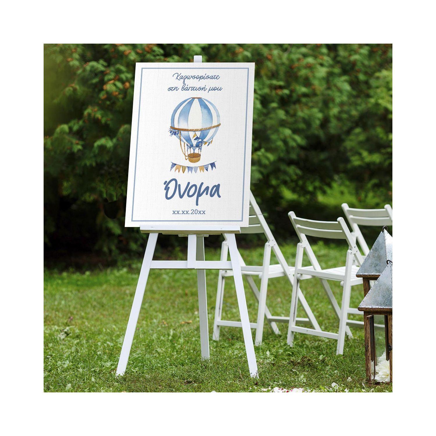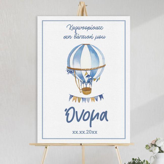 Πίνακας σε καμβά καλωσόρισμα βάπτισης, Αερόστατο watercolor με όνομα, μπλε