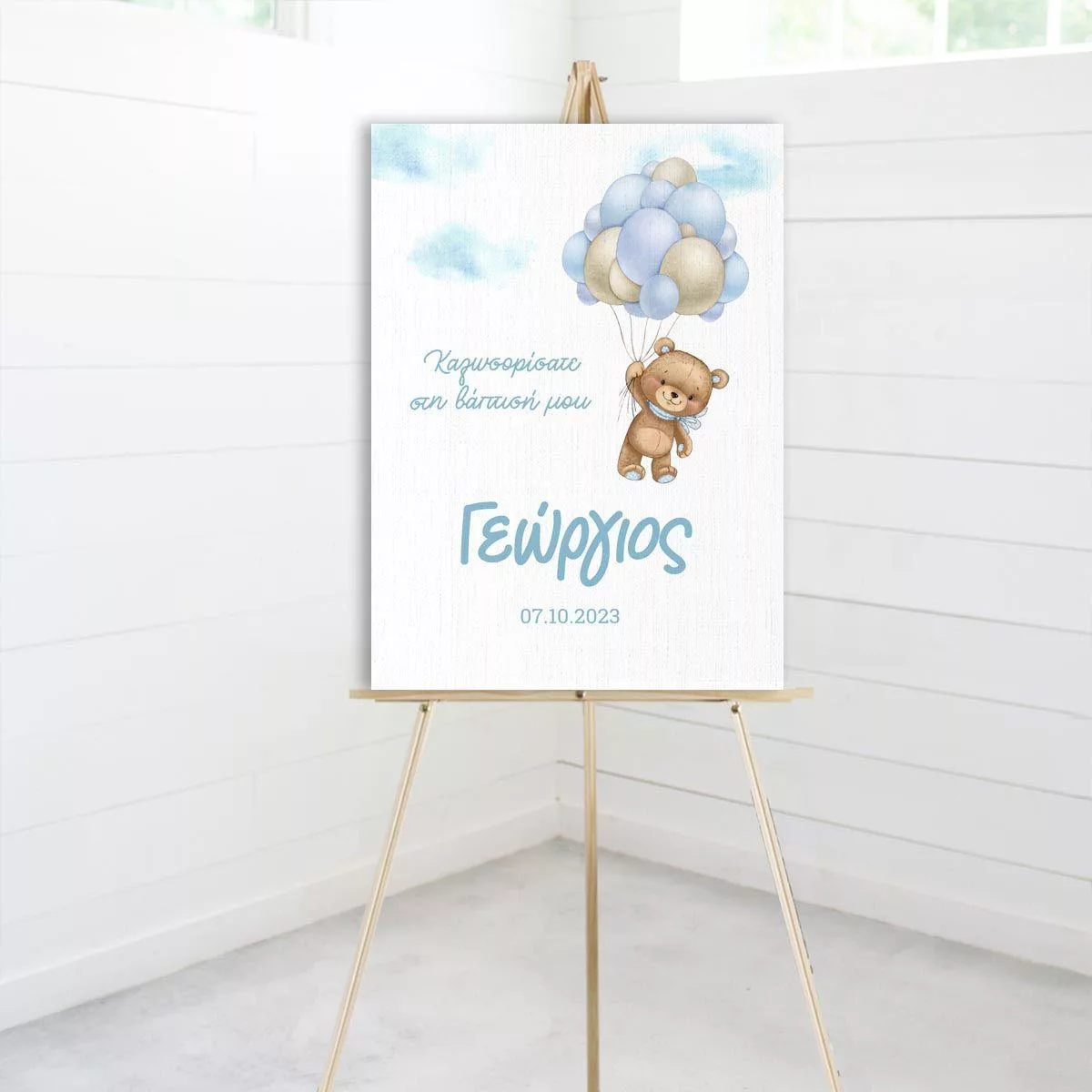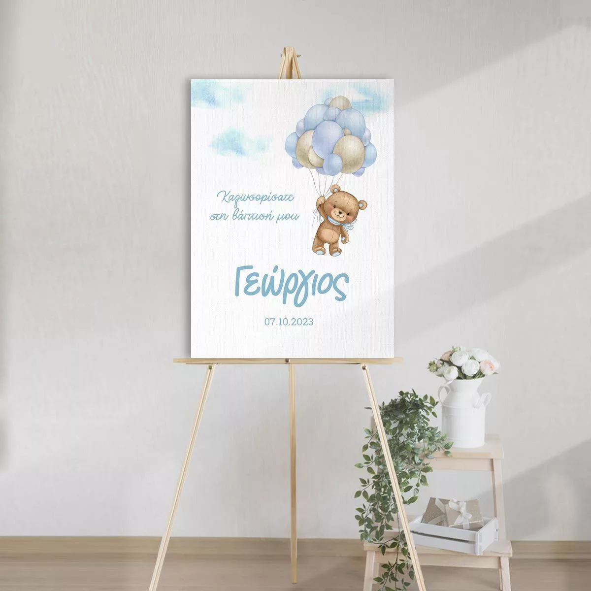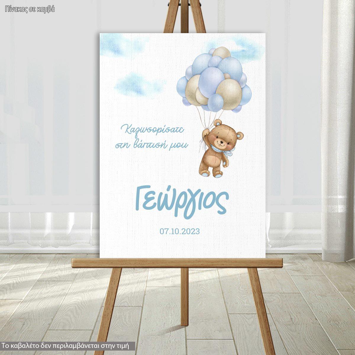 Πίνακας σε καμβά καλωσόρισμα βάπτισης, Αρκουδάκι με μπαλόνια