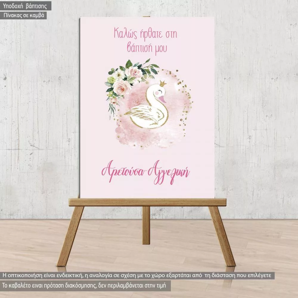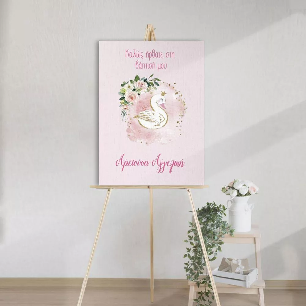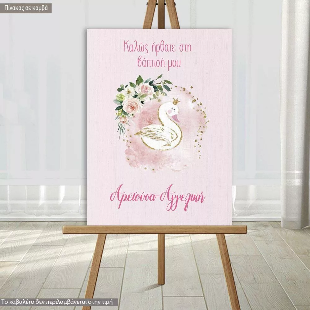 Πίνακας σε καμβά Καλώς ήρθατε στη βάπτιση μου, Κύκνος και λουλούδια