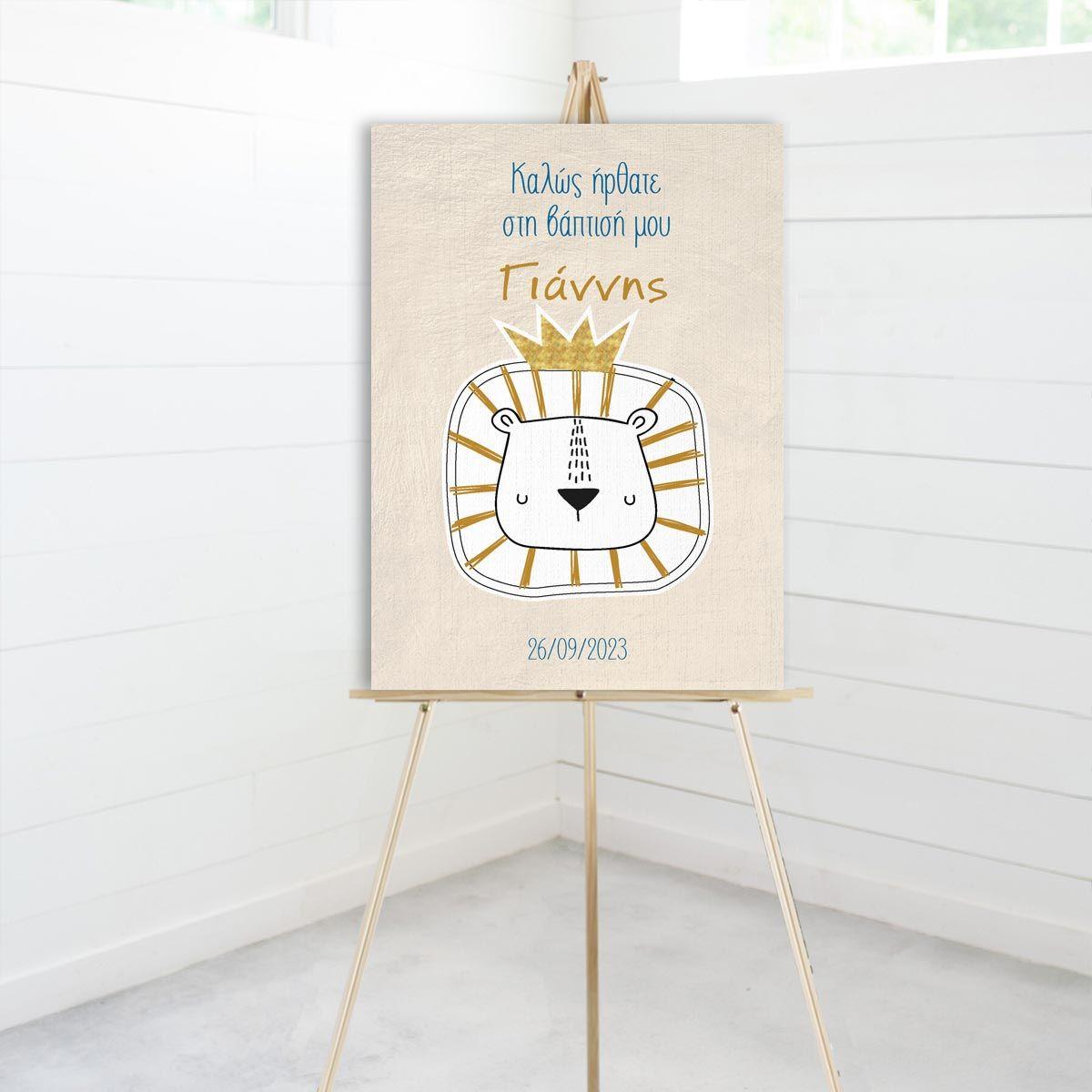Πίνακας σε καμβά καλωσόρισμα βάπτισης, Λιονταράκι με στέμμα