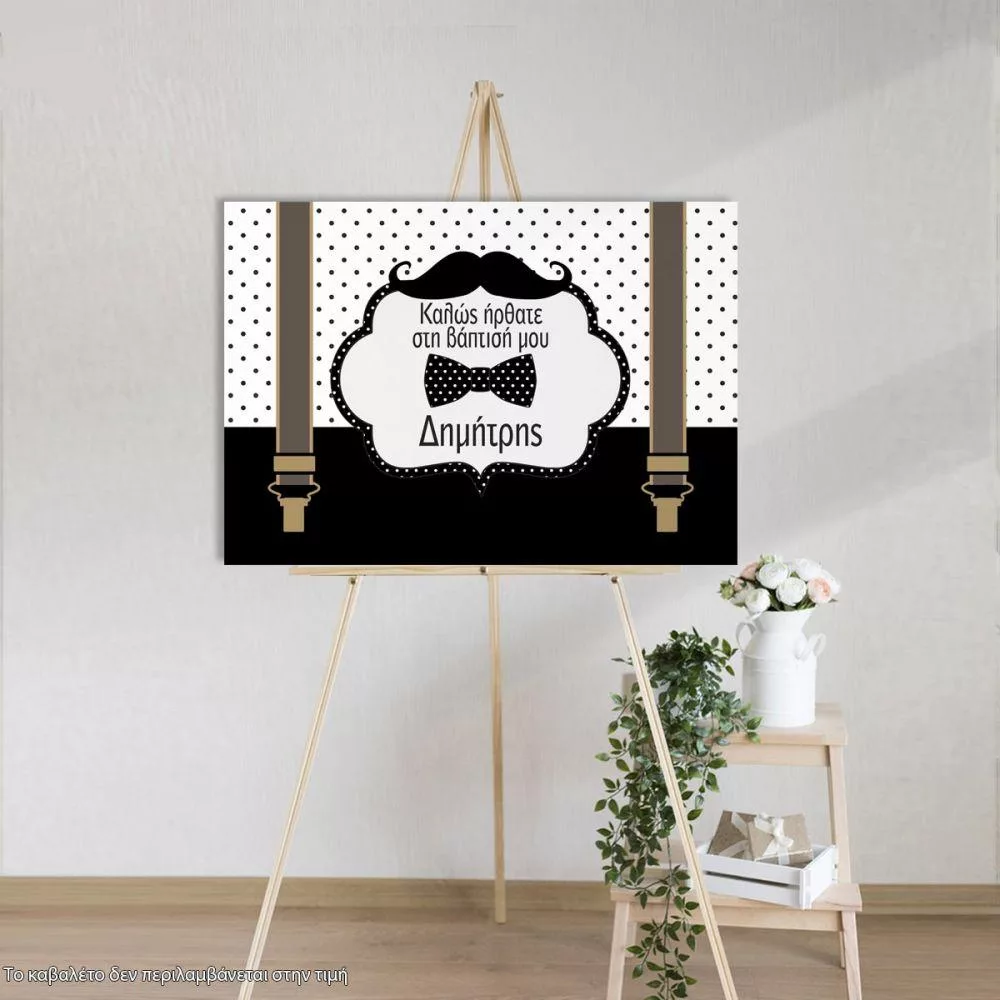 Πίνακας σε καμβά Καλώς ήρθατε στη βάπτιση μου, Μουστάκι παπιγιόν και τιράντες