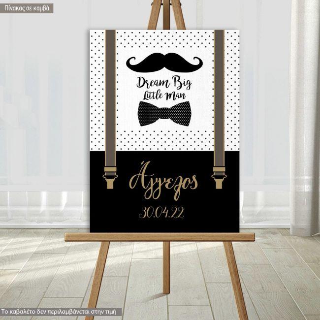 Πίνακας σε καμβά κάθετος Dream big little man, Μουστάκι παπιγιόν και τιράντες