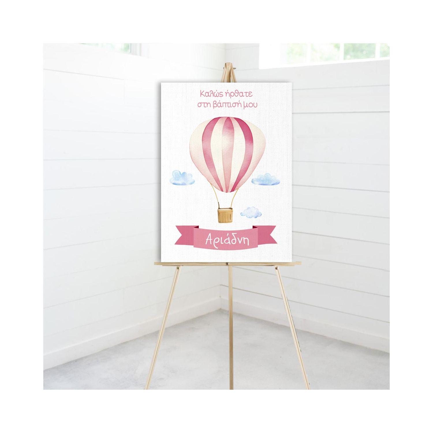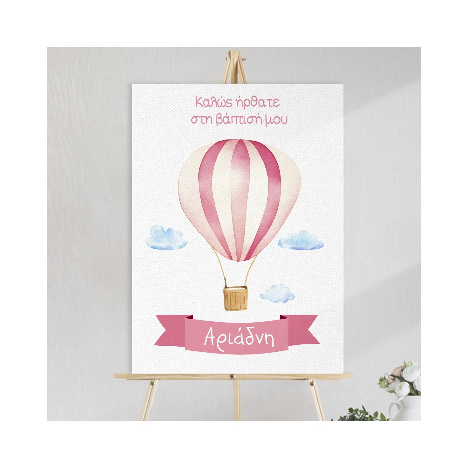 Πίνακας σε καμβά βάπτισης, Αερόστατο Ροζ θέμα 1