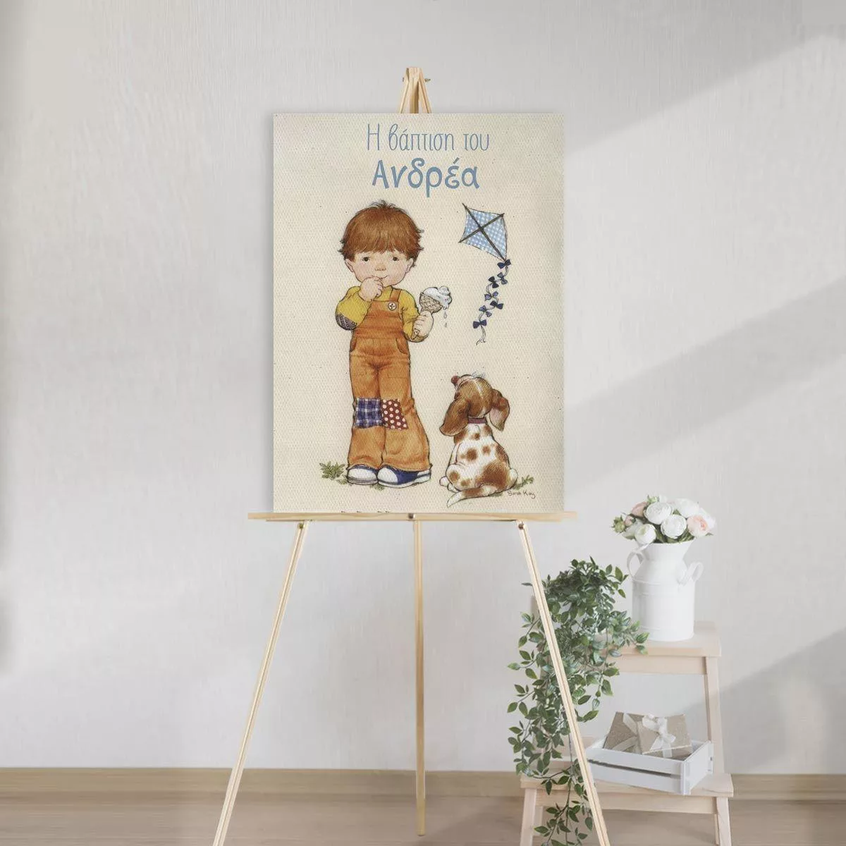 Πίνακας σε καμβά βάπτισης, Αγοράκι σκυλάκι Sarah Kay