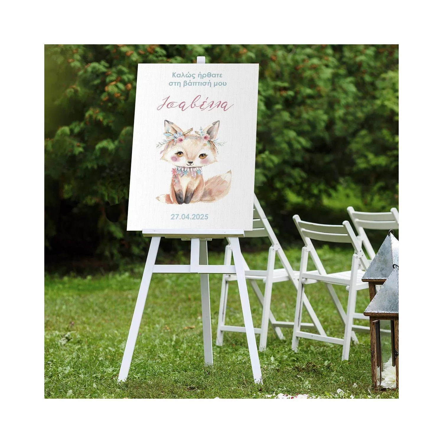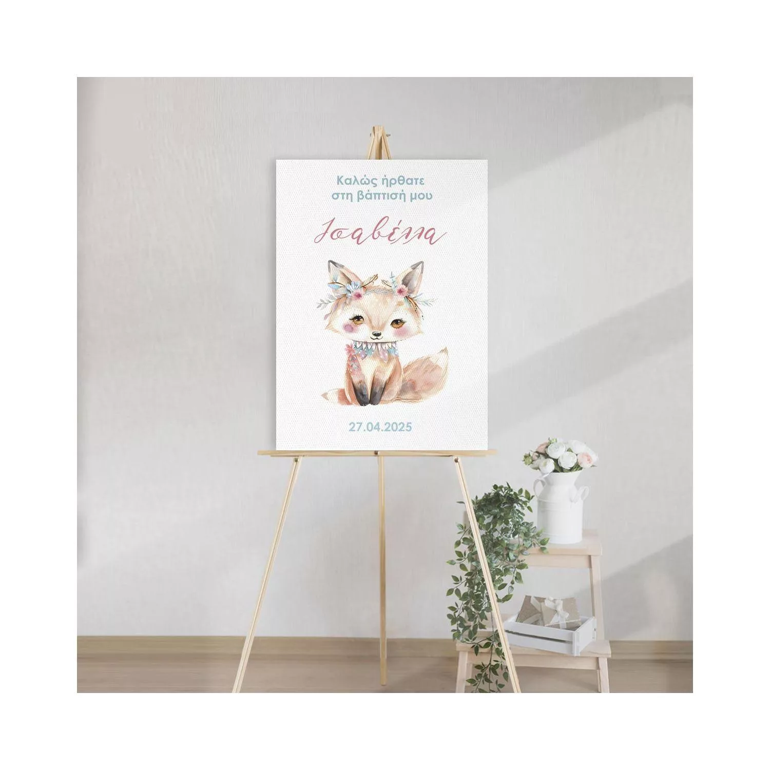 Πίνακας σε καμβά βάπτισης, Αλεπουδάκι με λουλούδια 2