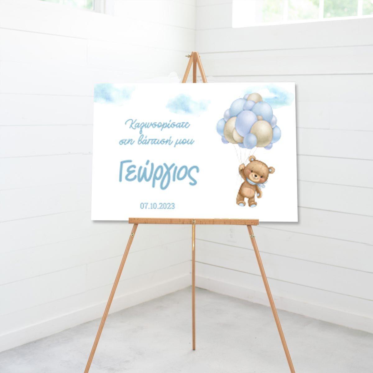 Πίνακας σε καμβά βάπτισης, Αρκουδάκι με μπαλόνια 2