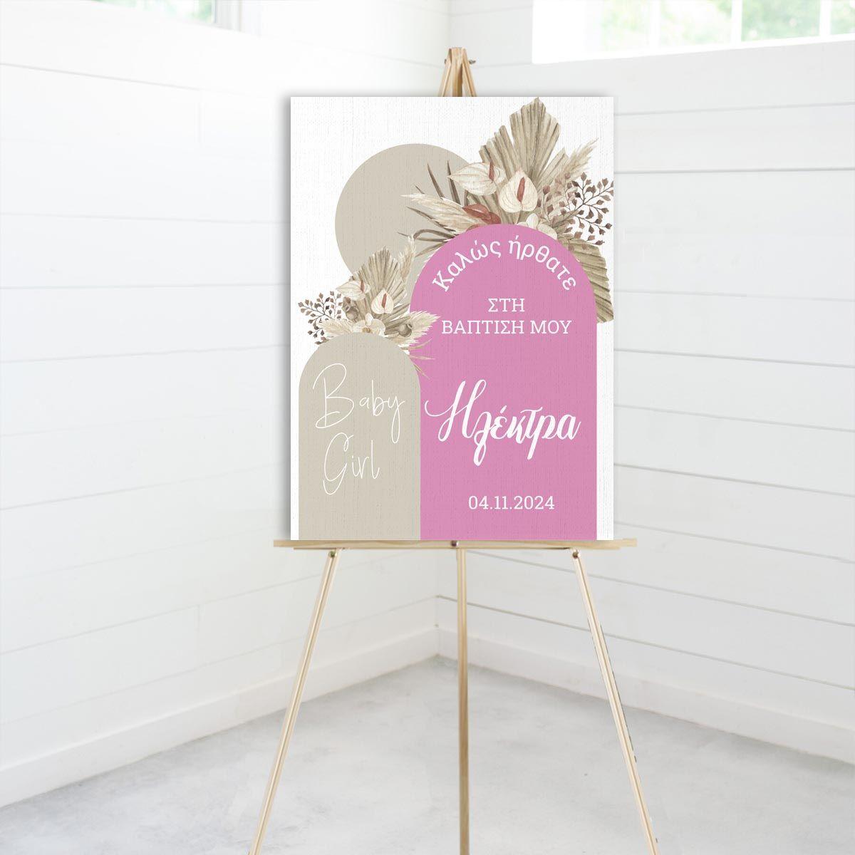 Πίνακας σε καμβά βάπτισης, Baby girl boho pink beige