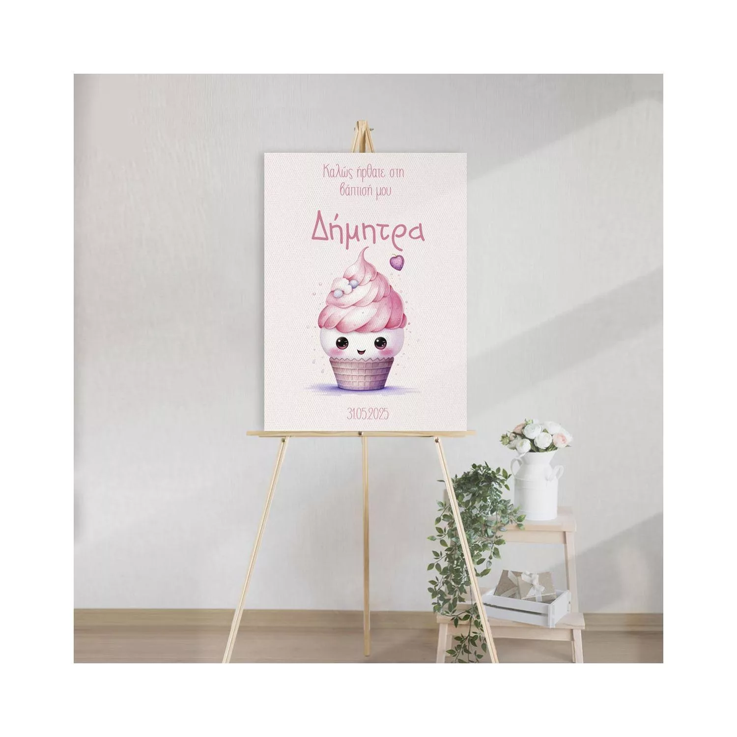 Πίνακας σε καμβά βάπτισης, Cup cake girl