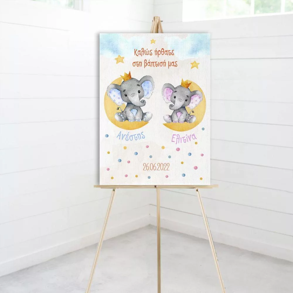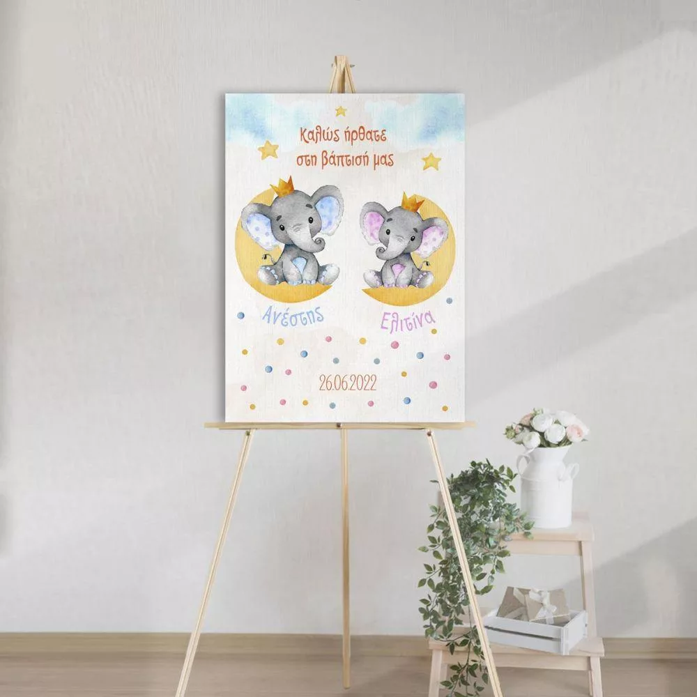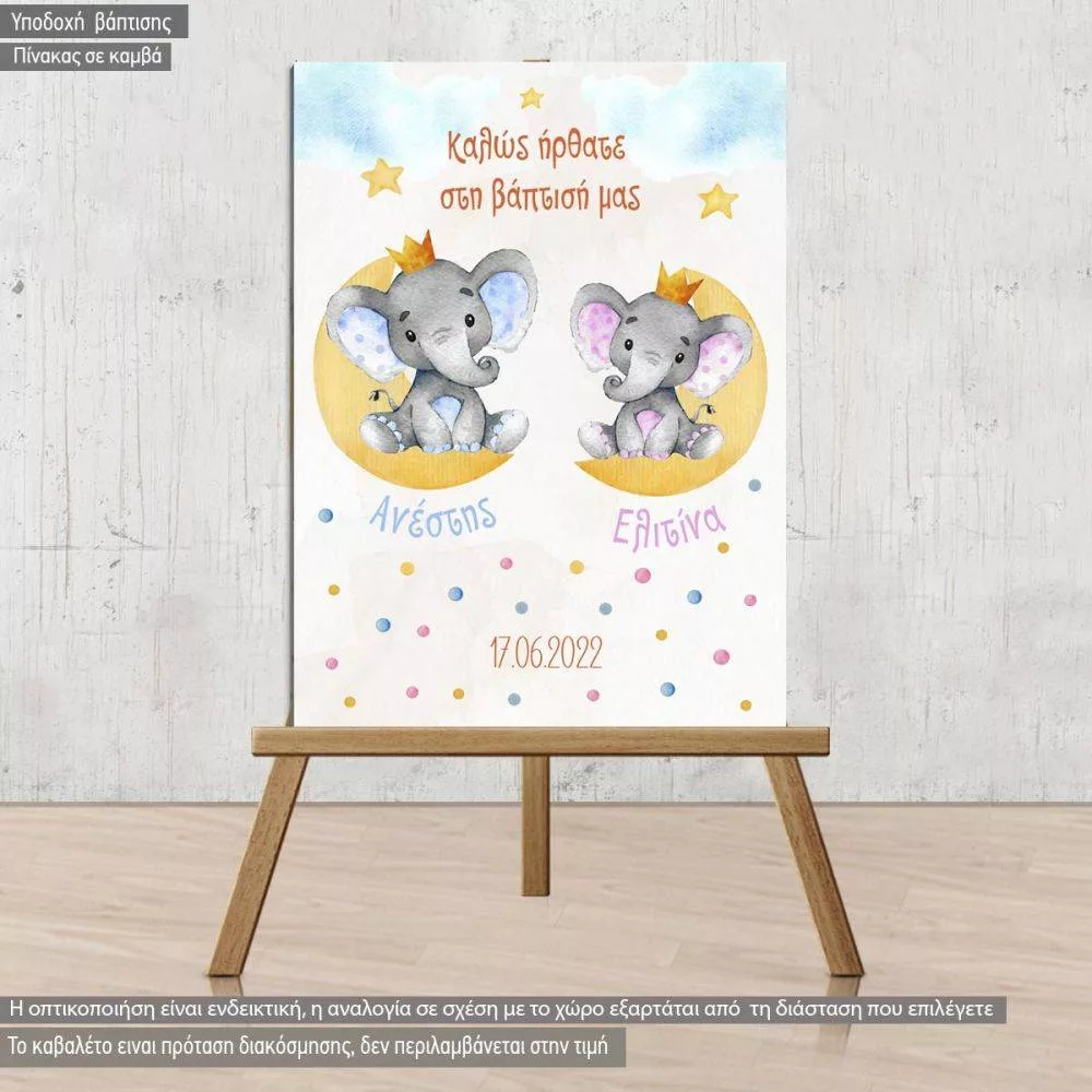 Πίνακας σε καμβά βάπτισης, Δίδυμα ελεφαντάκια