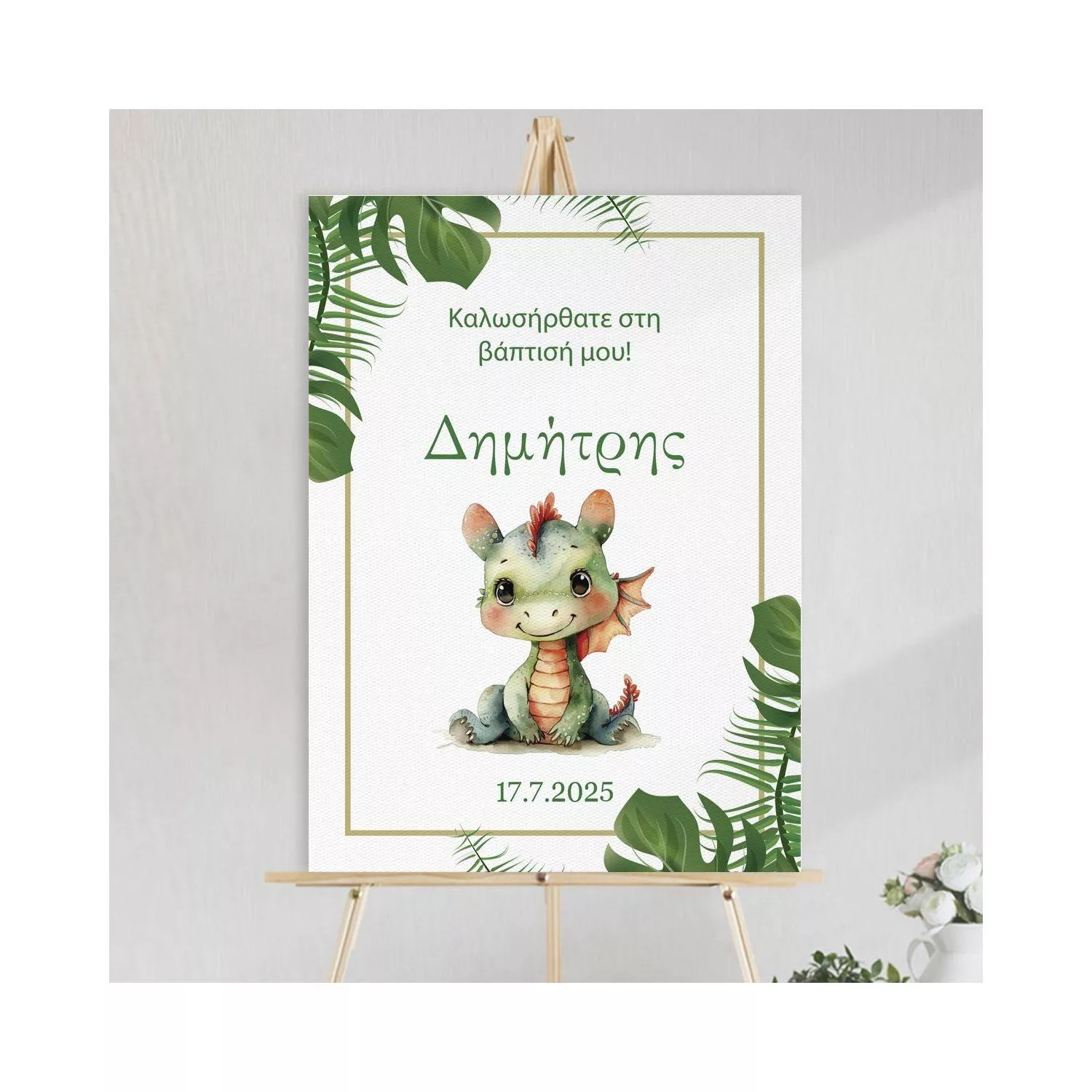 Πίνακας σε καμβά βάπτισης, Δρακάκι tropical leaves