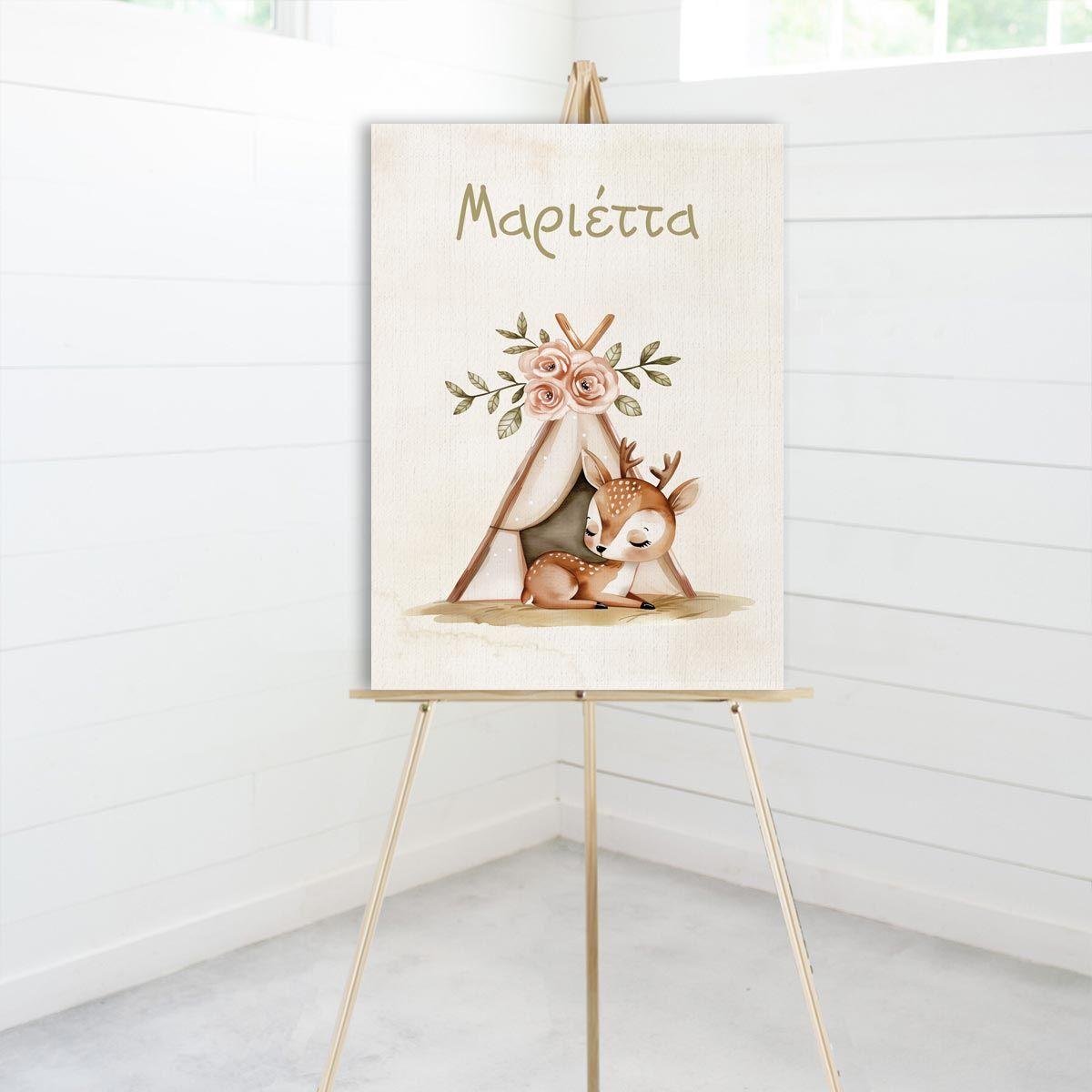 Πίνακας σε καμβά βάπτισης, Ελαφάκι Little Deer teepee