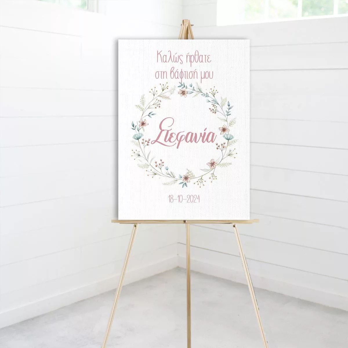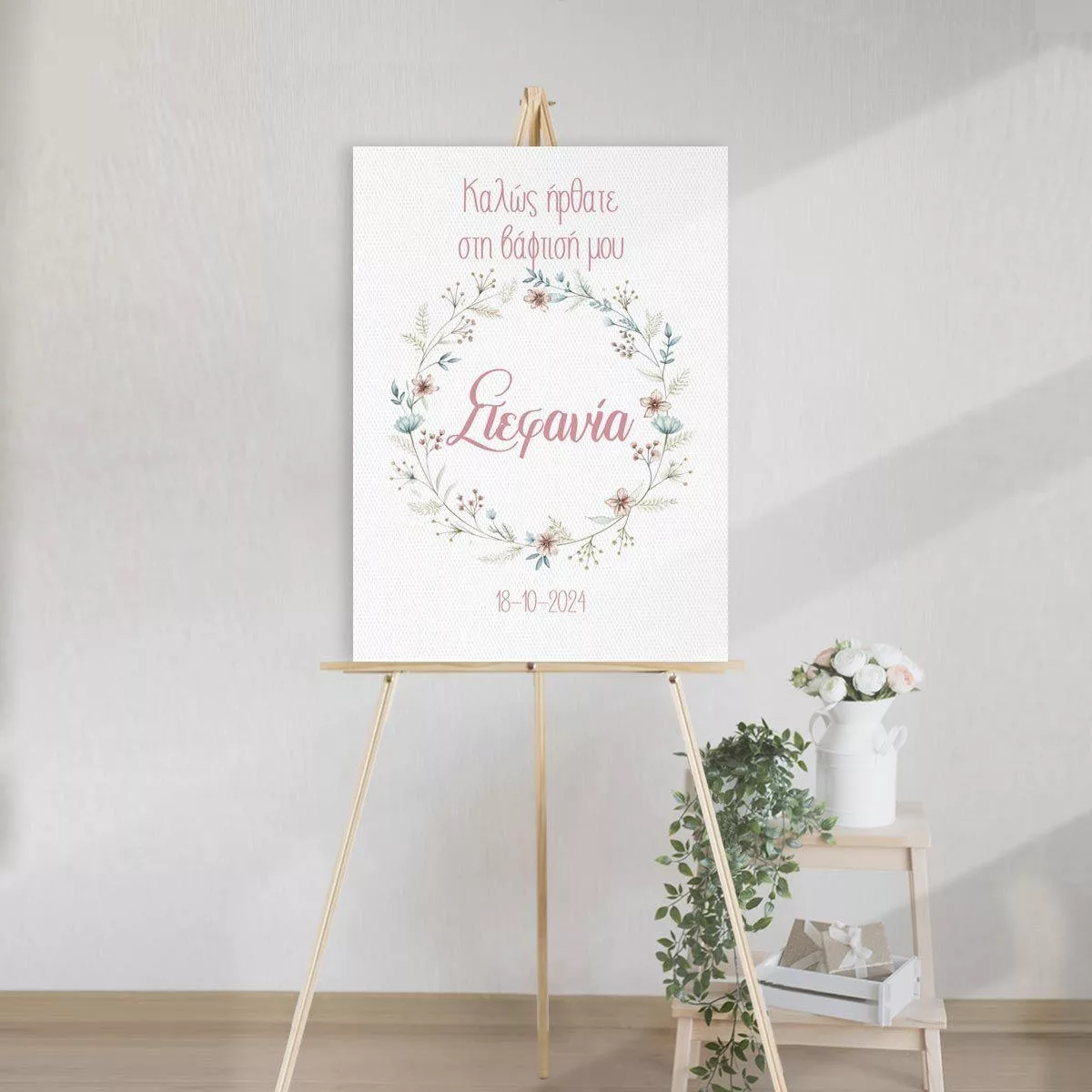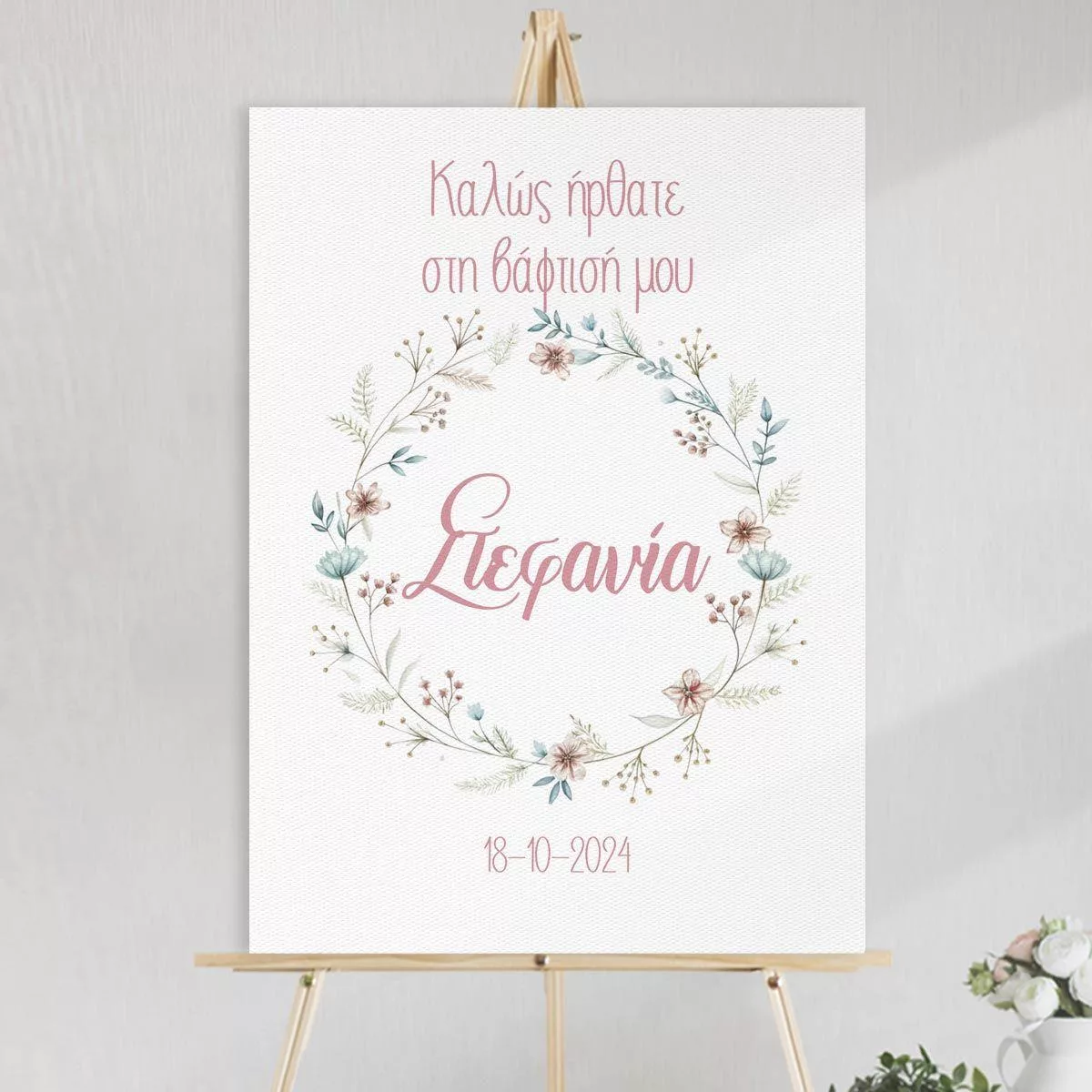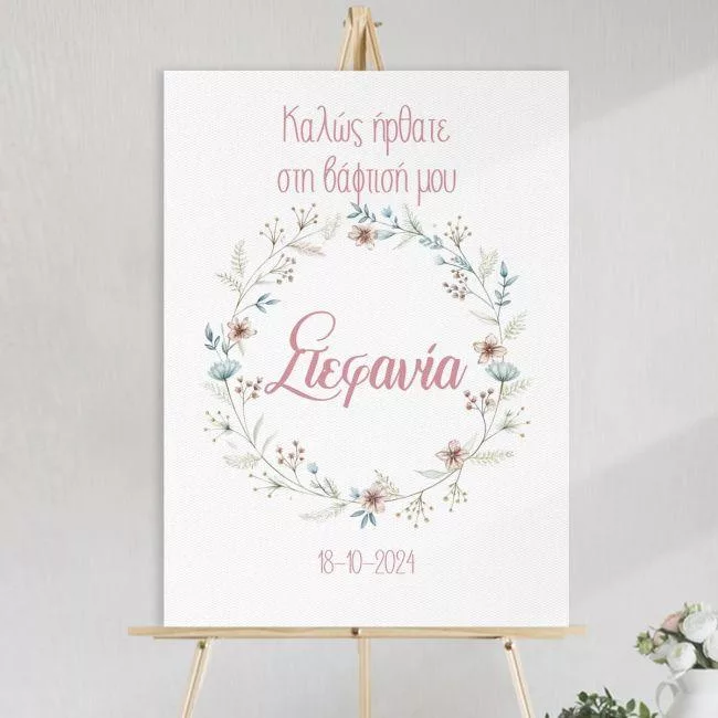 Πίνακας σε καμβά βάπτισης, Στεφάνι λουλουδιών