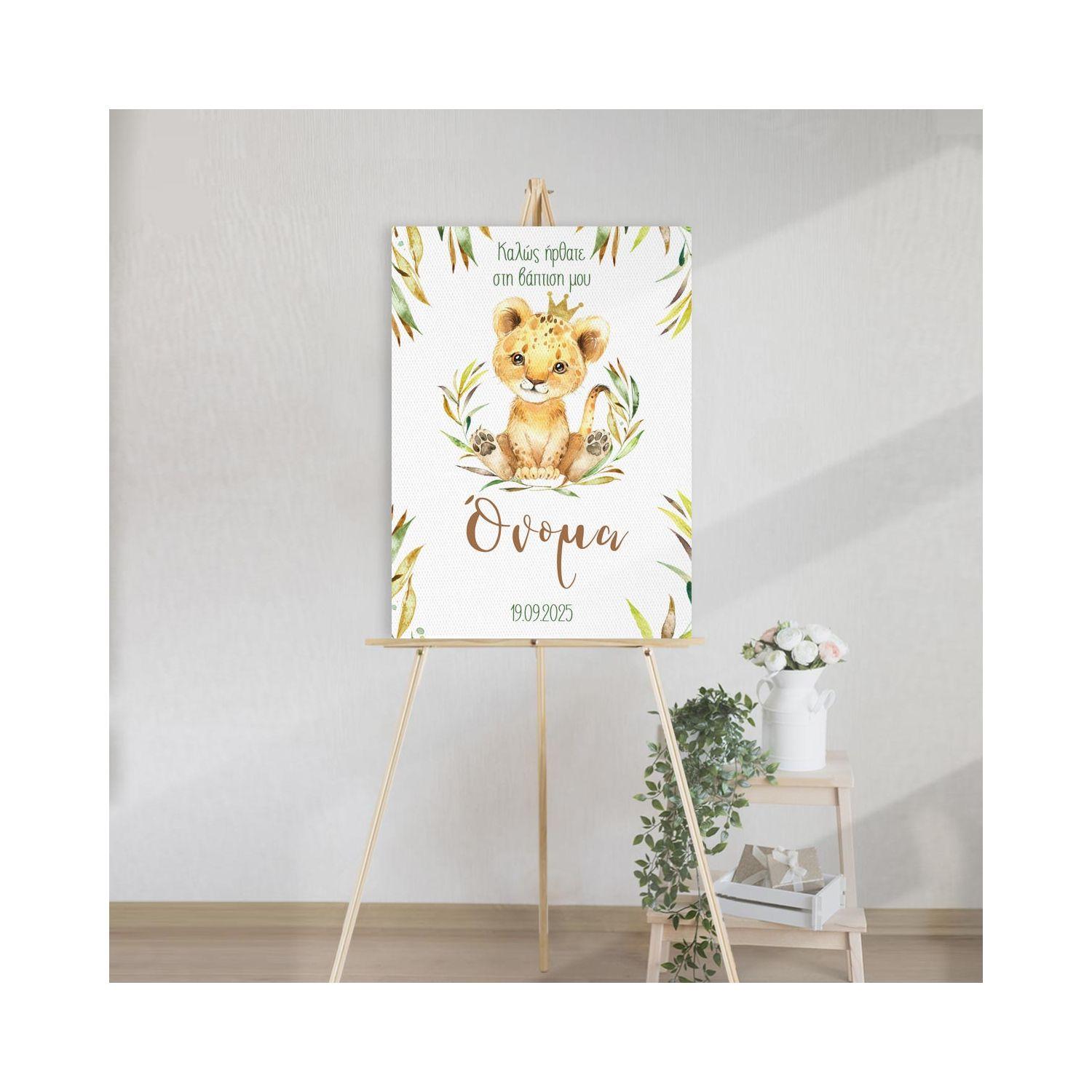 Πίνακας σε καμβά βάπτισης, Λιονταράκι lion king με στέμμα
