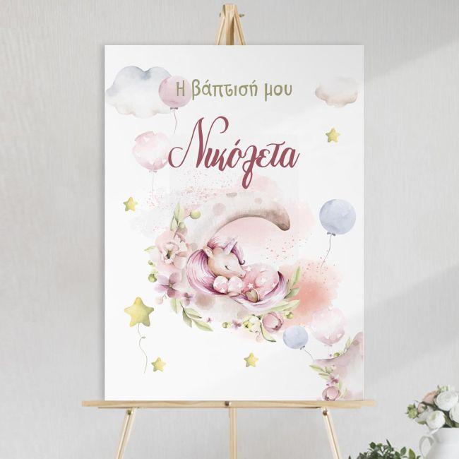 Πίνακας σε καμβά βάπτισης, Μονόκερος ροζ θέμα