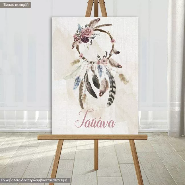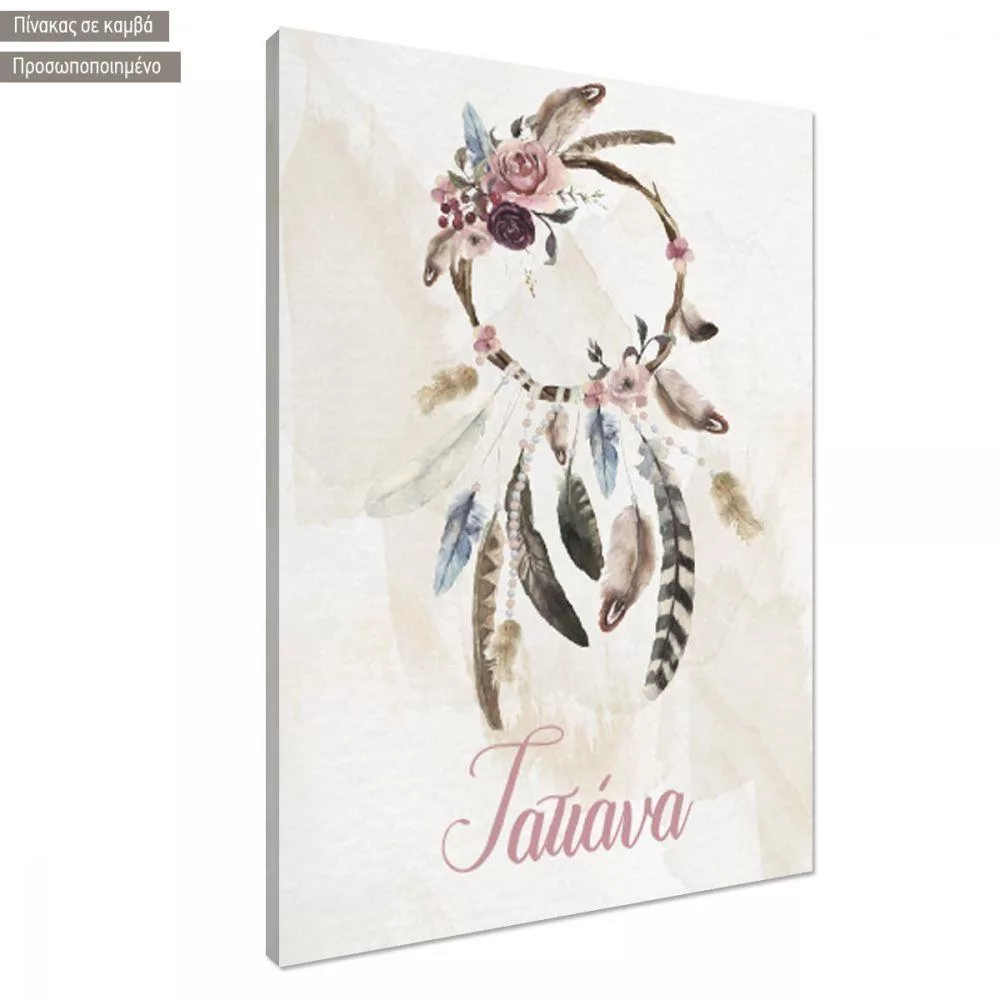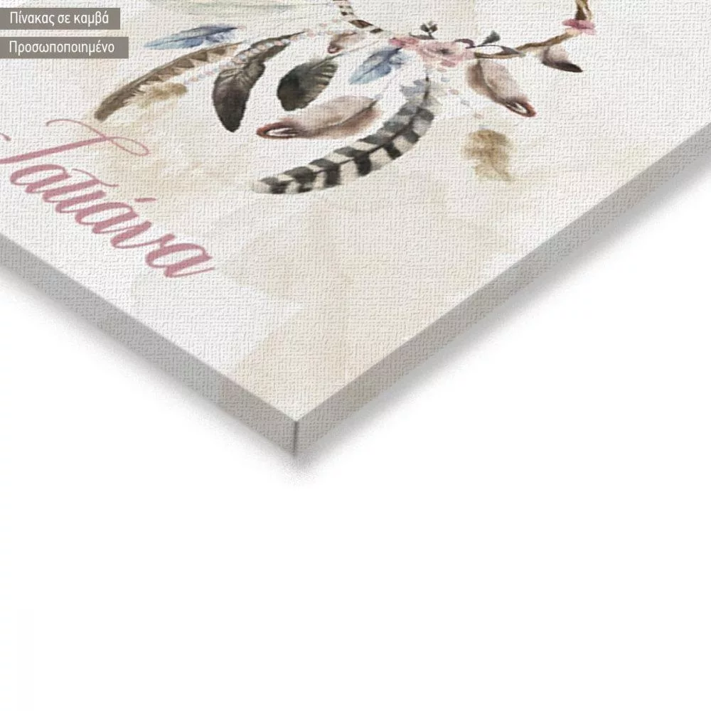 Πίνακας σε καμβά βάπτισης, Ονειροπαγίδα watercolor, προσωποποιημένη