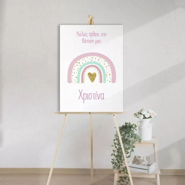 Πίνακας σε καμβά βάπτισης, Ουράνιο τόξο nordic χρυσή καρδιά
