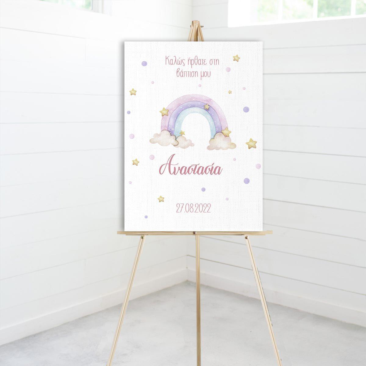 Πίνακας σε καμβά βάπτισης, Ουράνιο τόξο ζωγραφιστό με σύννεφα, προσωποποιημένο