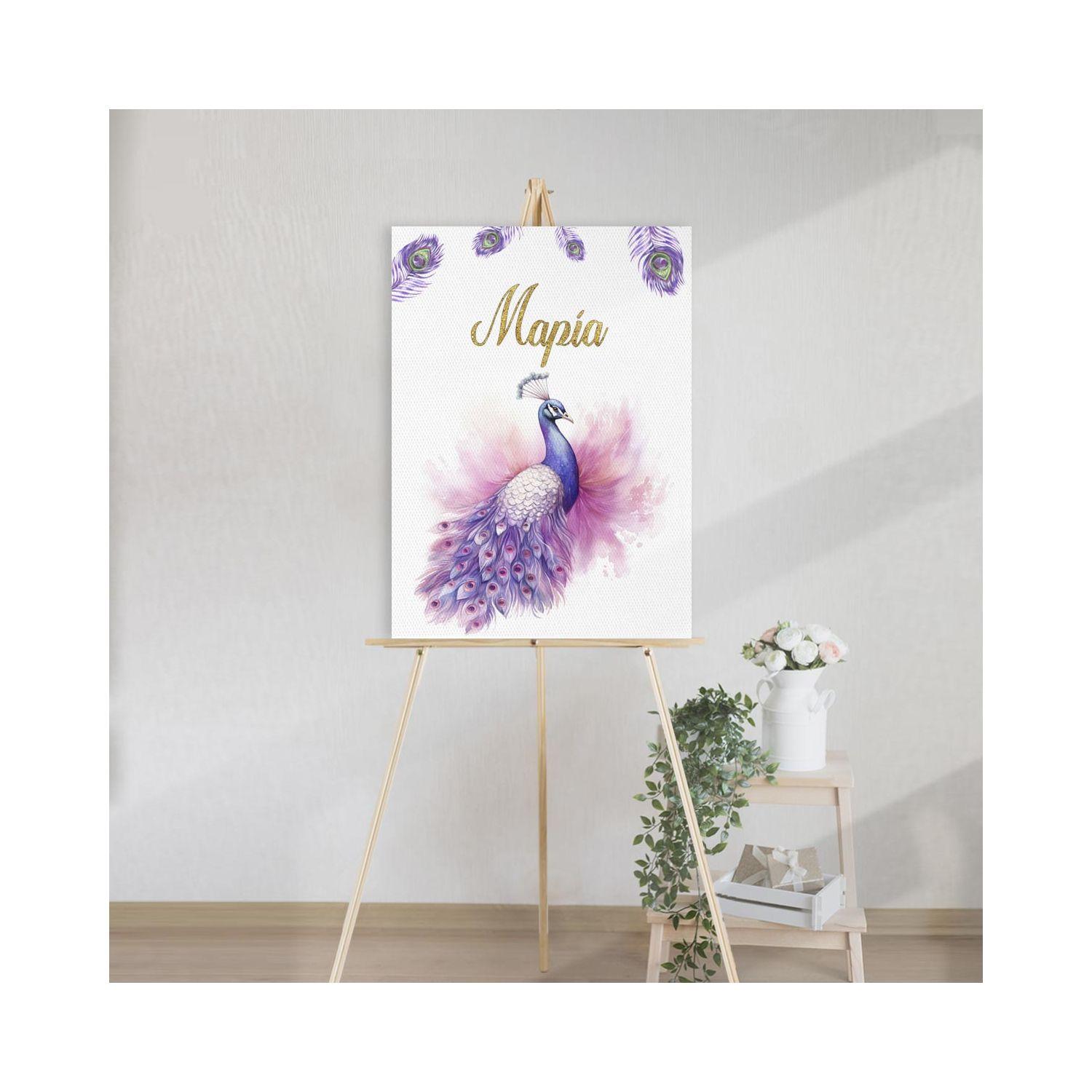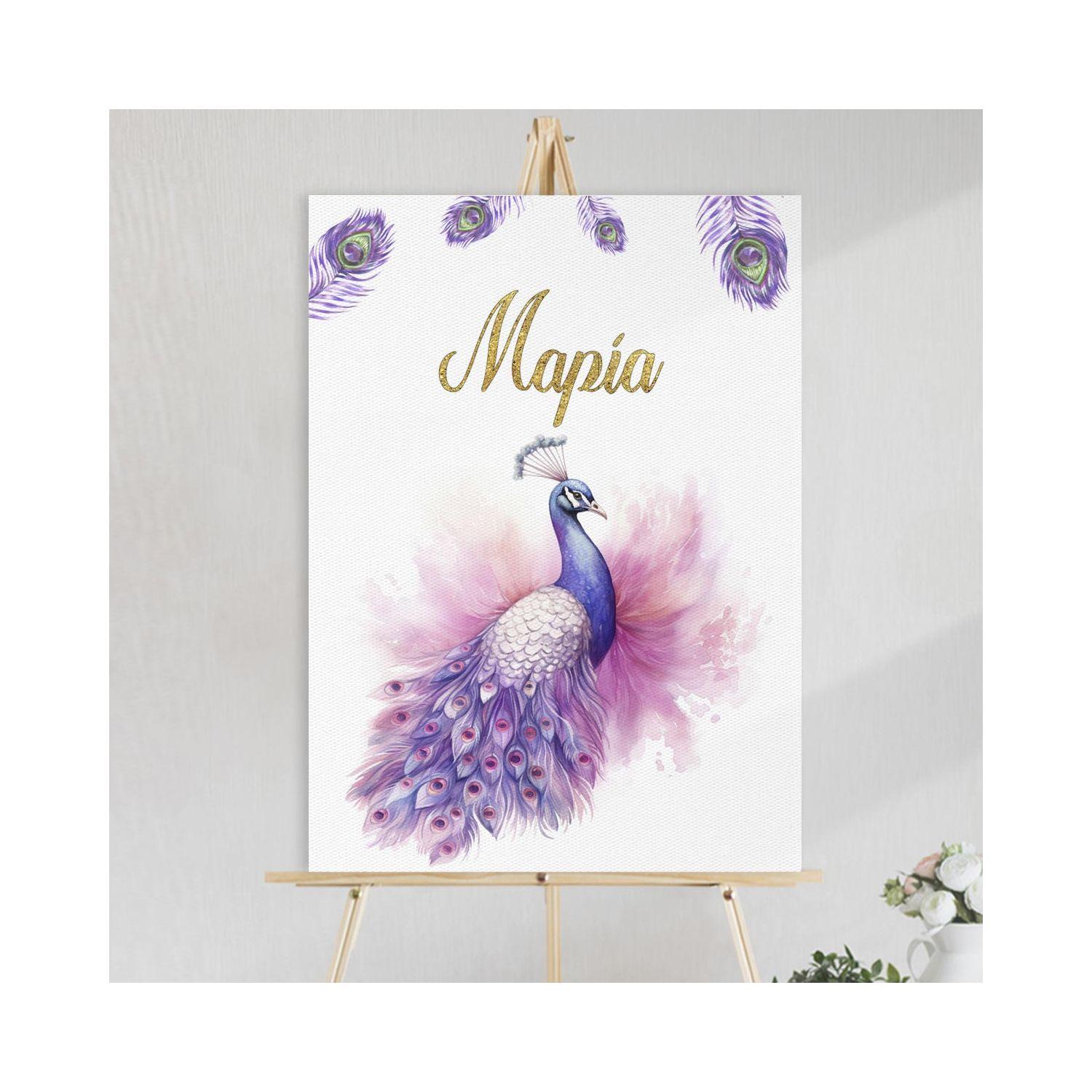 Πίνακας σε καμβά βάπτισης, Παγώνι girly