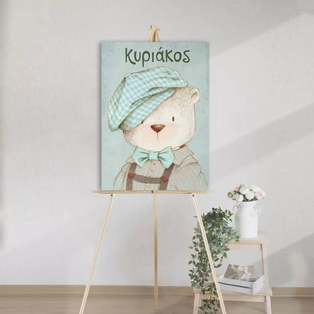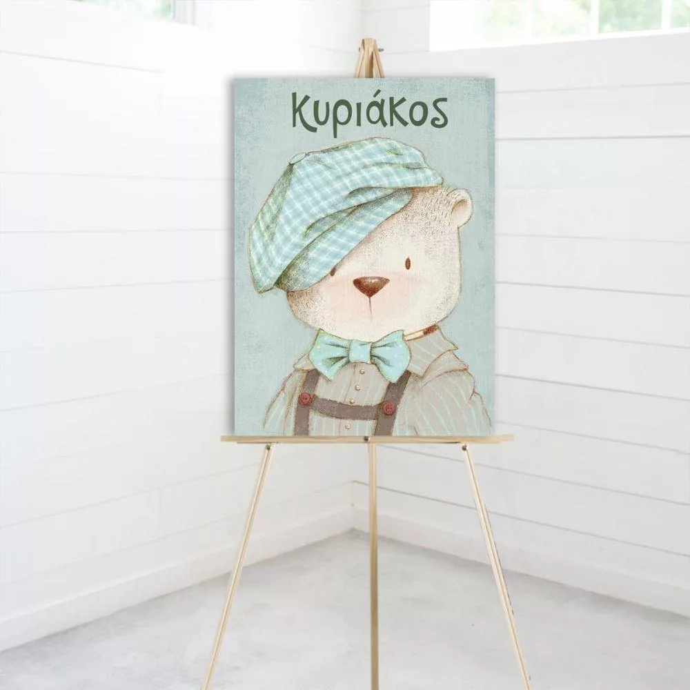 Πίνακας σε καμβά βάπτισης, Vintage αρκουδάκι