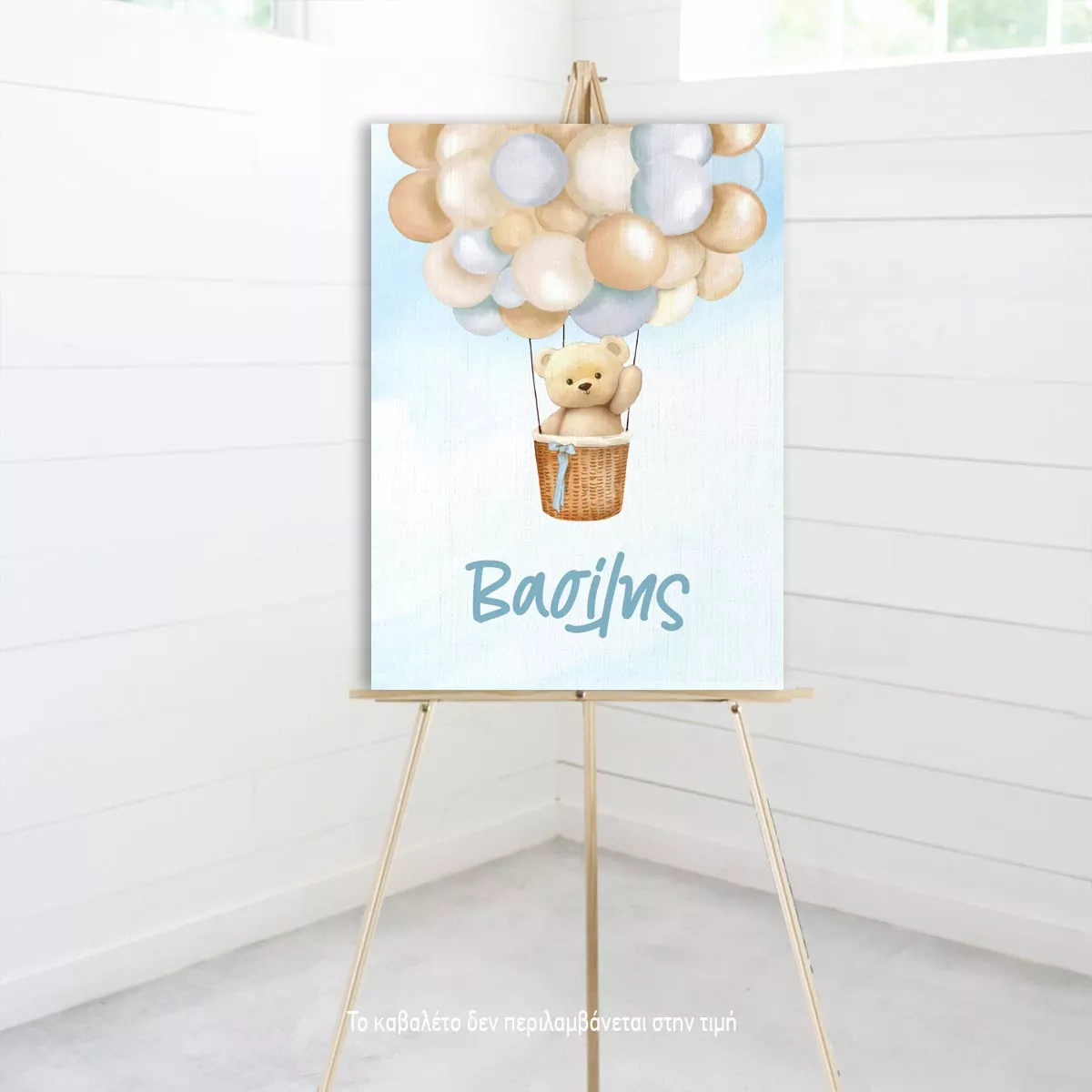 Πίνακας σε καμβά υποδοχής βάπτισης, Αρκουδάκι με μπαλόνια 2, αγόρι