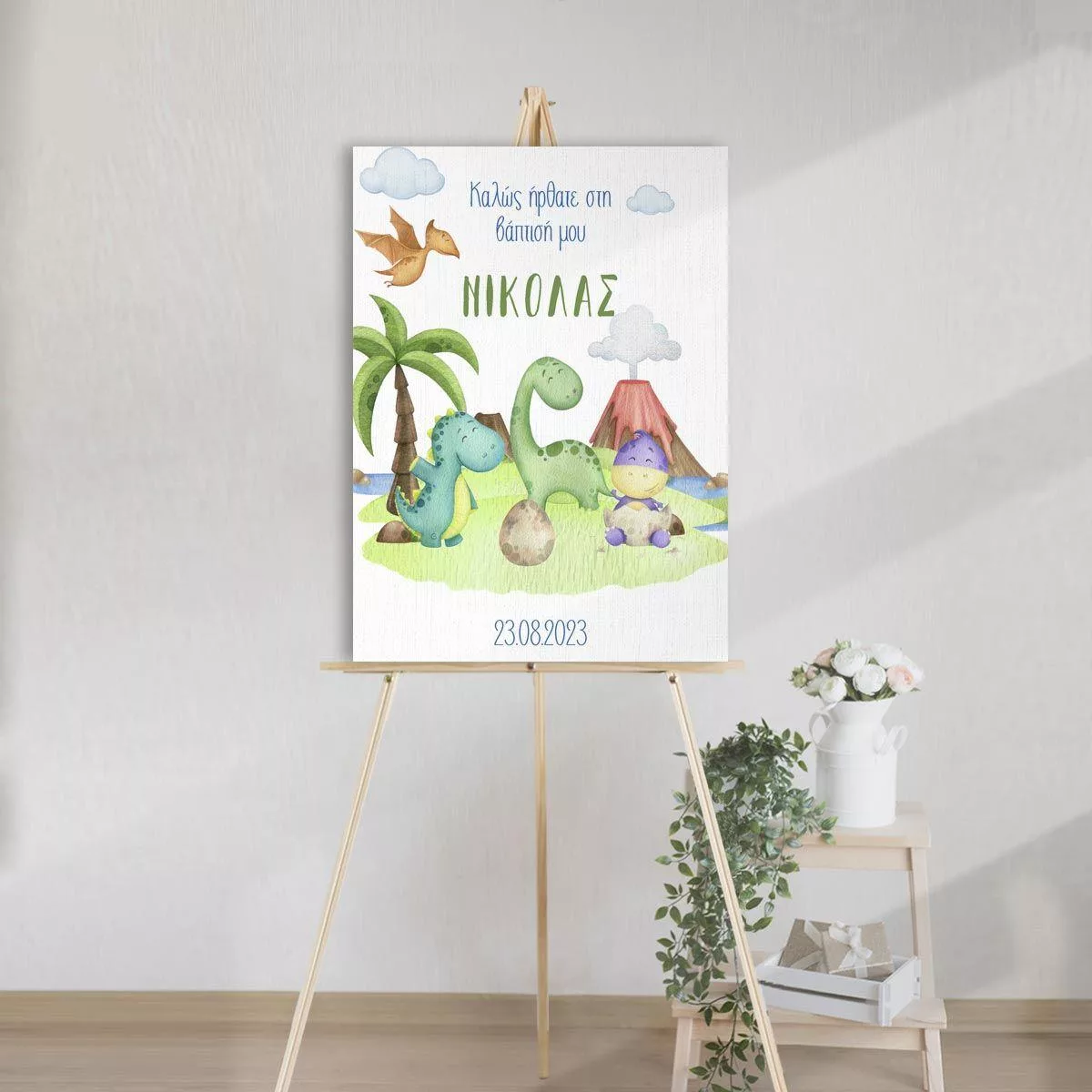 Πίνακας σε καμβά υποδοχής βάπτισης, Cute dinos island art I