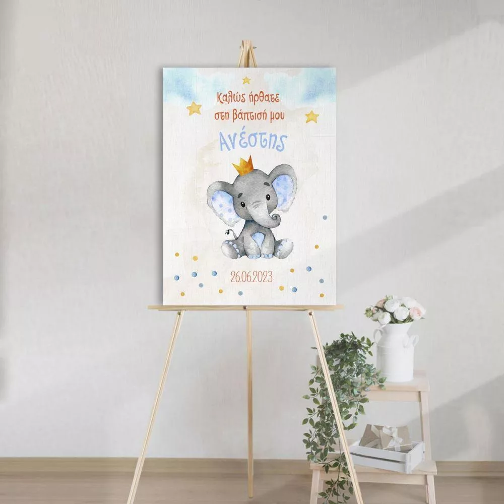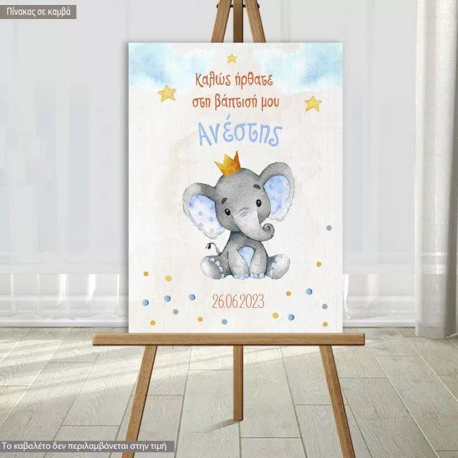 Πίνακας σε καμβά υποδοχής βάπτισης, Ελεφαντάκι με κορώνα watercolor