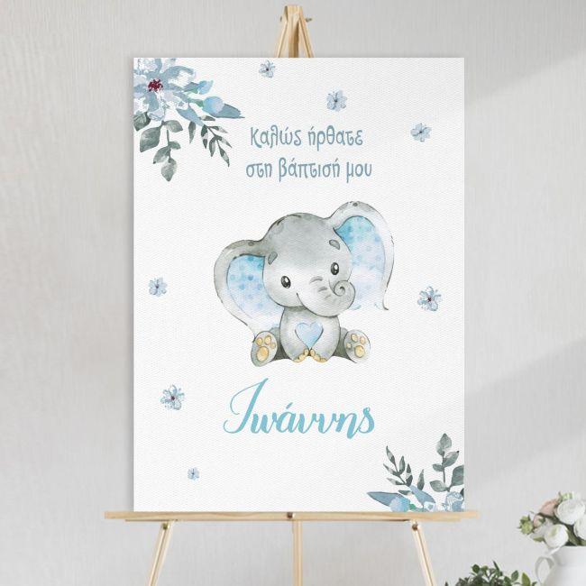 Πίνακας σε καμβά υποδοχής βάπτισης, Ελεφαντάκι ζωγραφιστό με λουλούδια