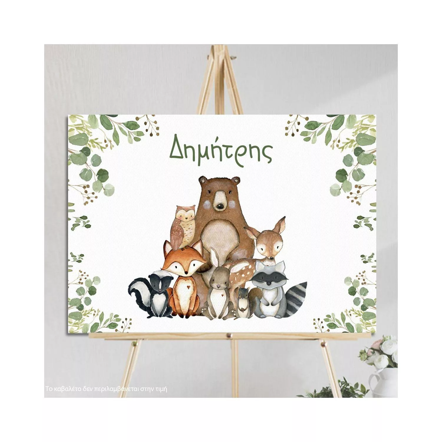 Πίνακας σε καμβά υποδοχής βάπτισης, Η μεγάλη παρέα, Ζωάκια του δάσους