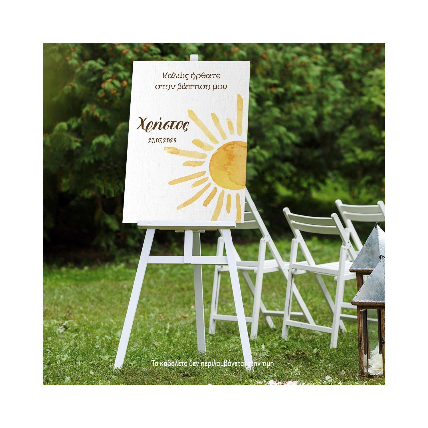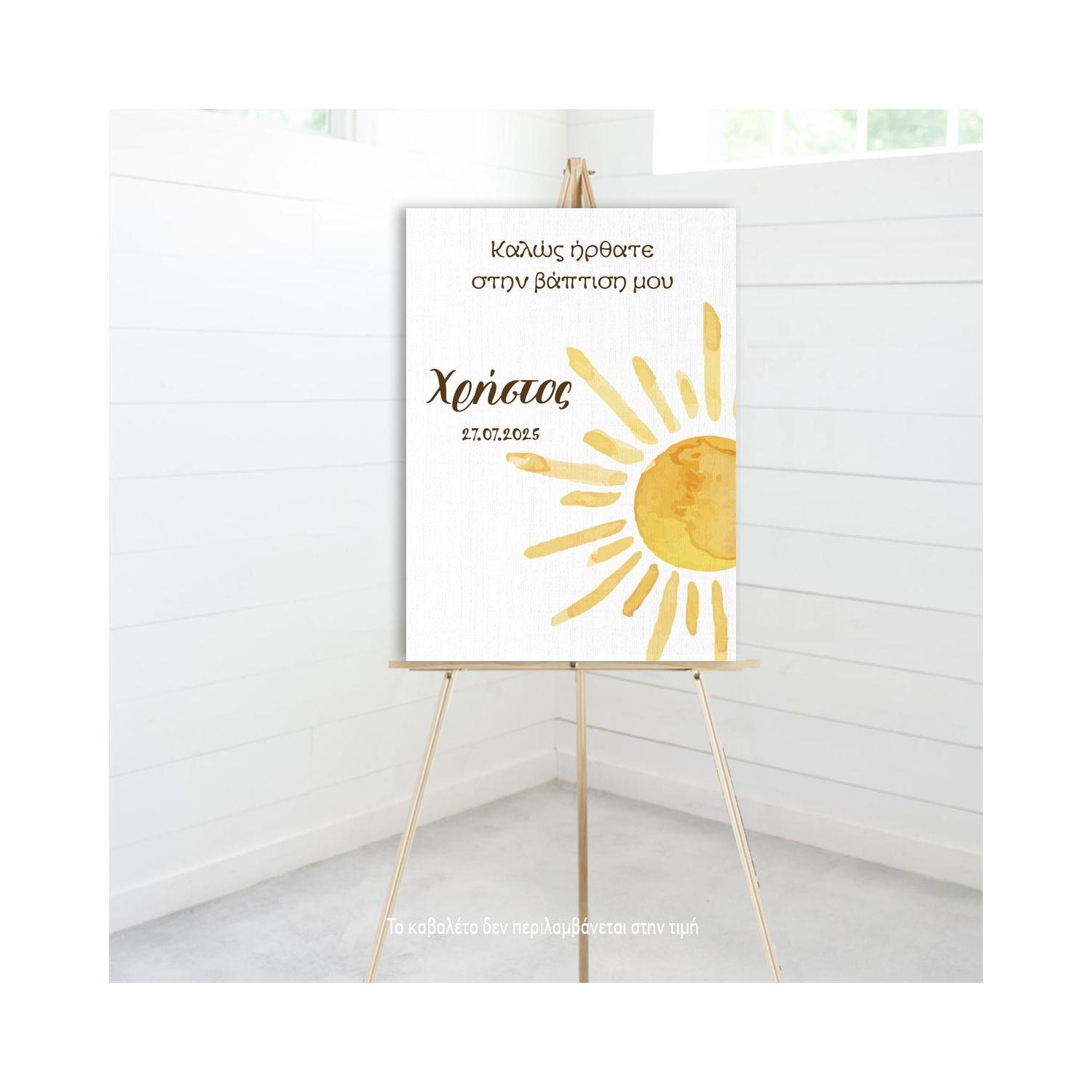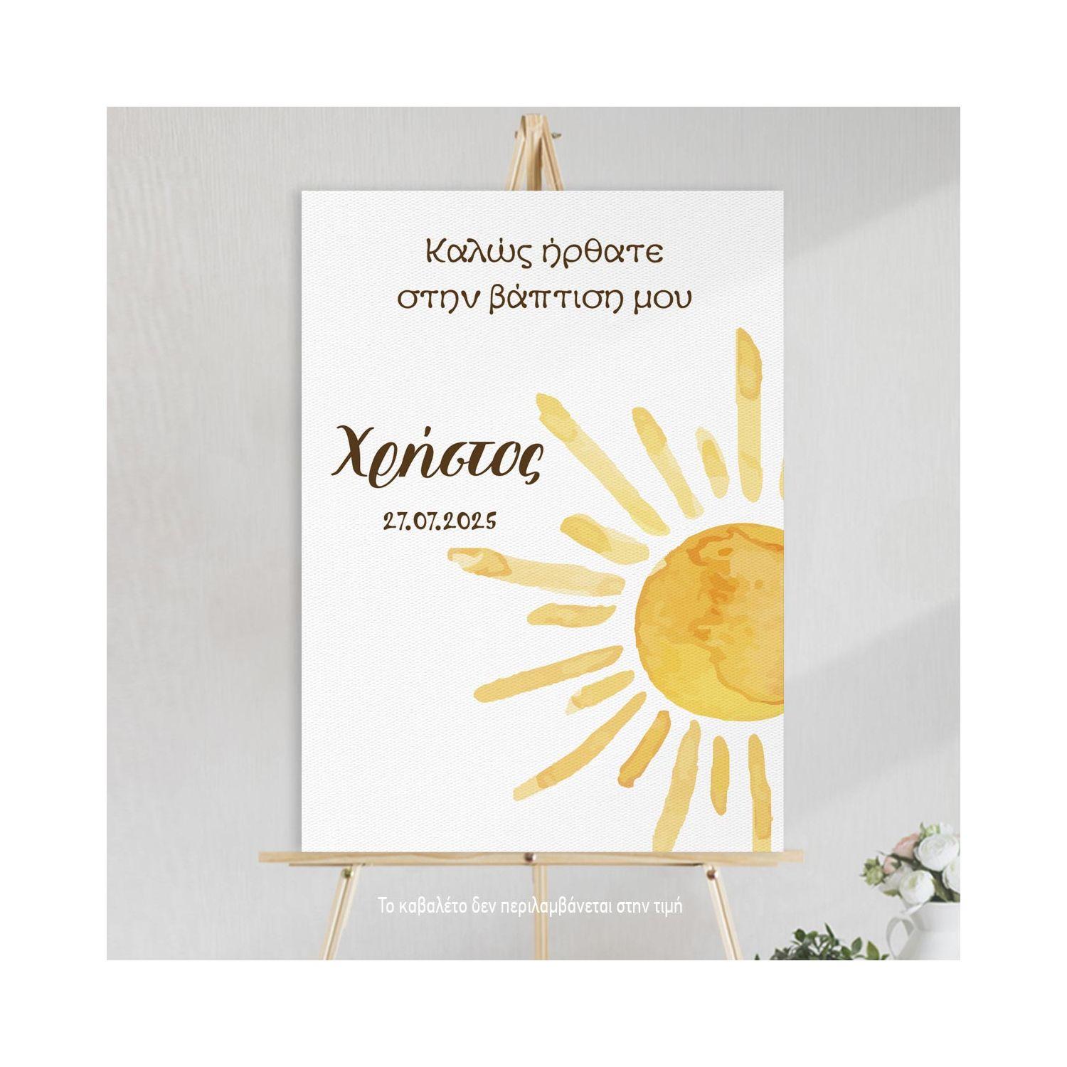 Πίνακας σε καμβά υποδοχής βάπτισης, Ήλιος Watercolor