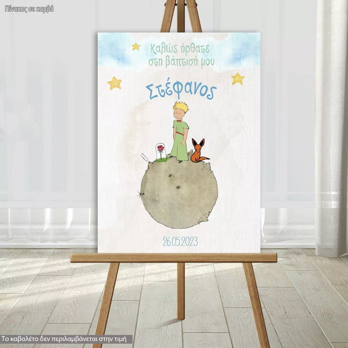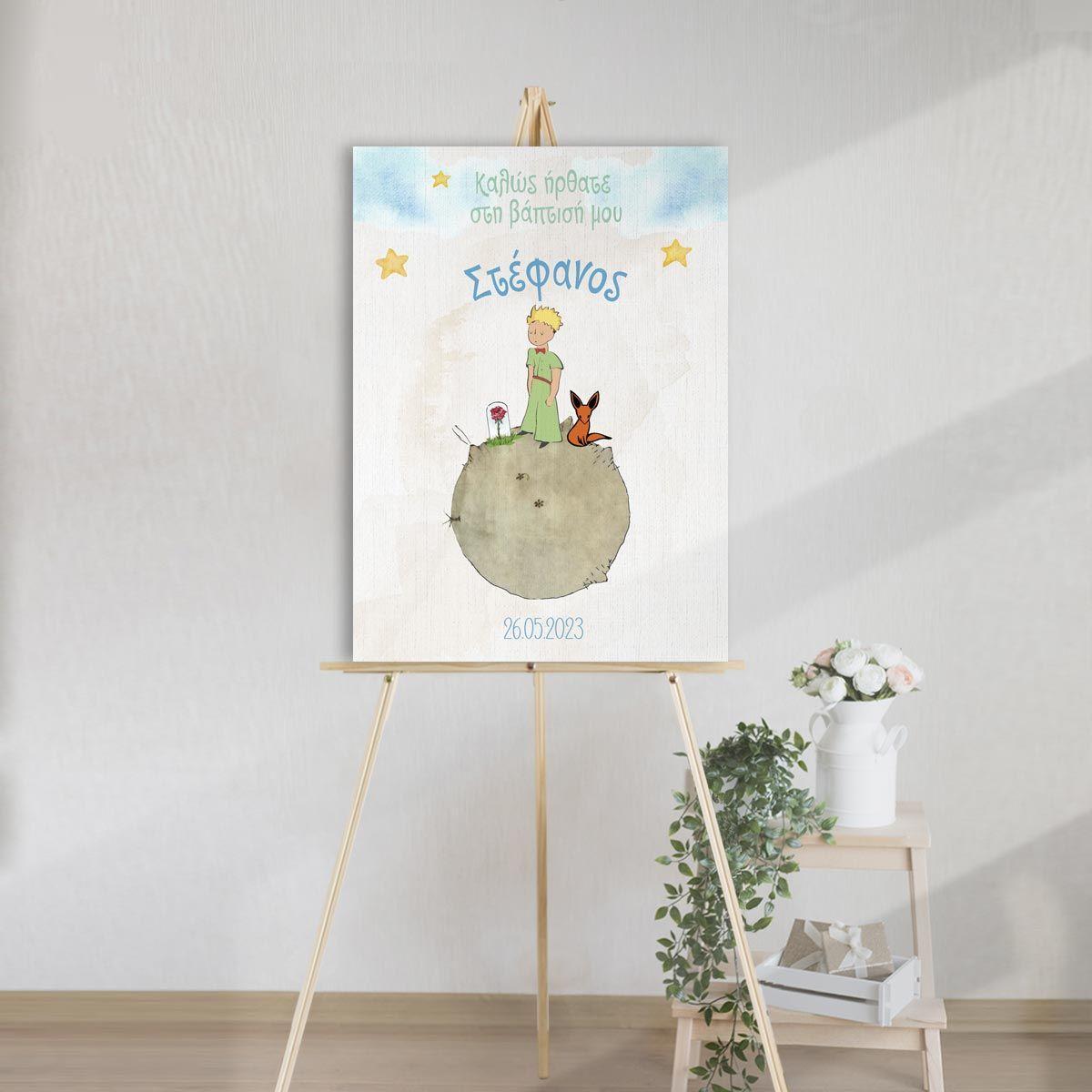 Πίνακας σε καμβά υποδοχής βάπτισης, Μικρός πρίγκιπας και μπεζ πλανήτης
