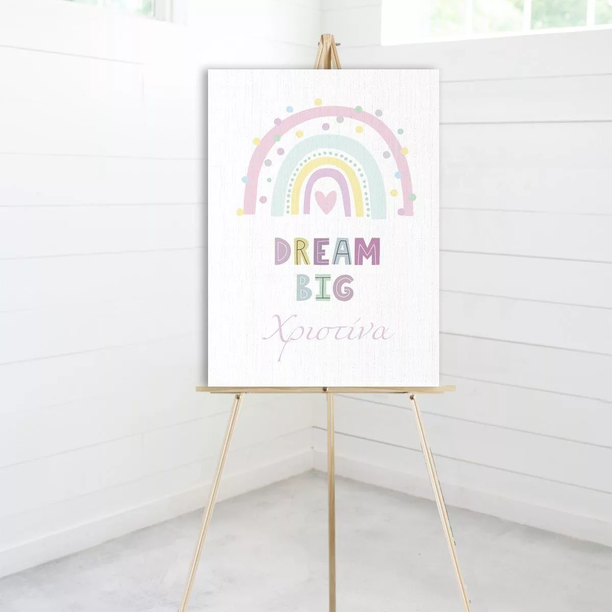 Πίνακας σε καμβά, καλωσόρισμα στολισμός βάπτισης, Ουράνιο τόξο ροζ παστέλ