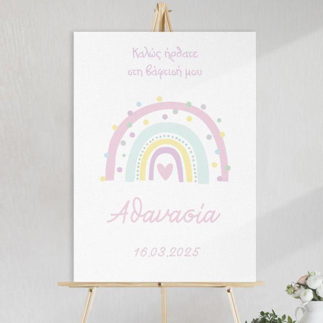 Πίνακας σε καμβά, καλωσόρισμα στολισμός βάπτισης, Ουράνιο τόξο ροζ παστέλ