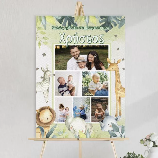 Πίνακας σε καμβά υποδοχής βάπτισης, Σαφάρι με κολάζ φωτογραφιών