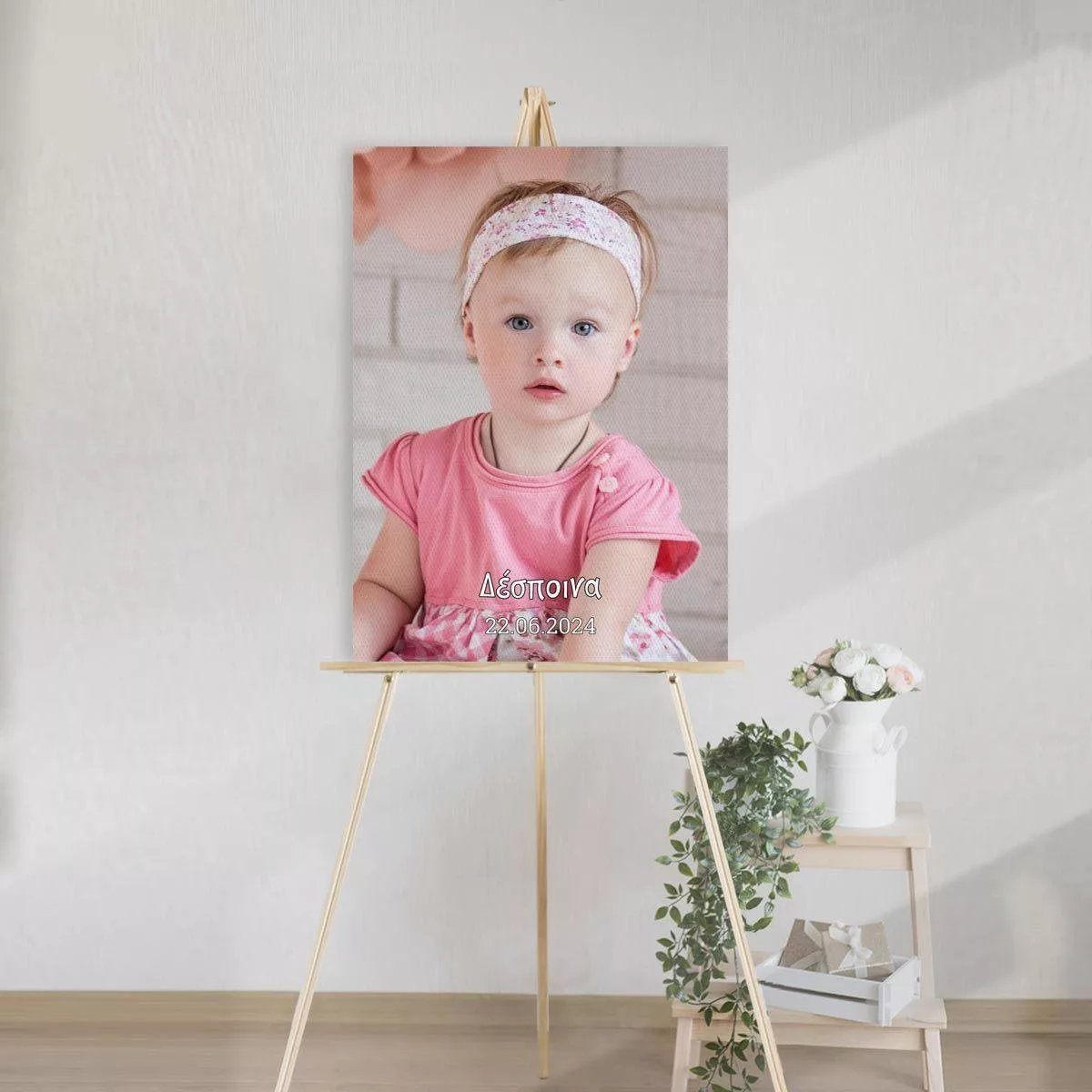 Καμβάς καλωσόρισμα βάπτισης με ολόκληρη φωτογραφία και διακριτικό όνομα, ημερομηνία