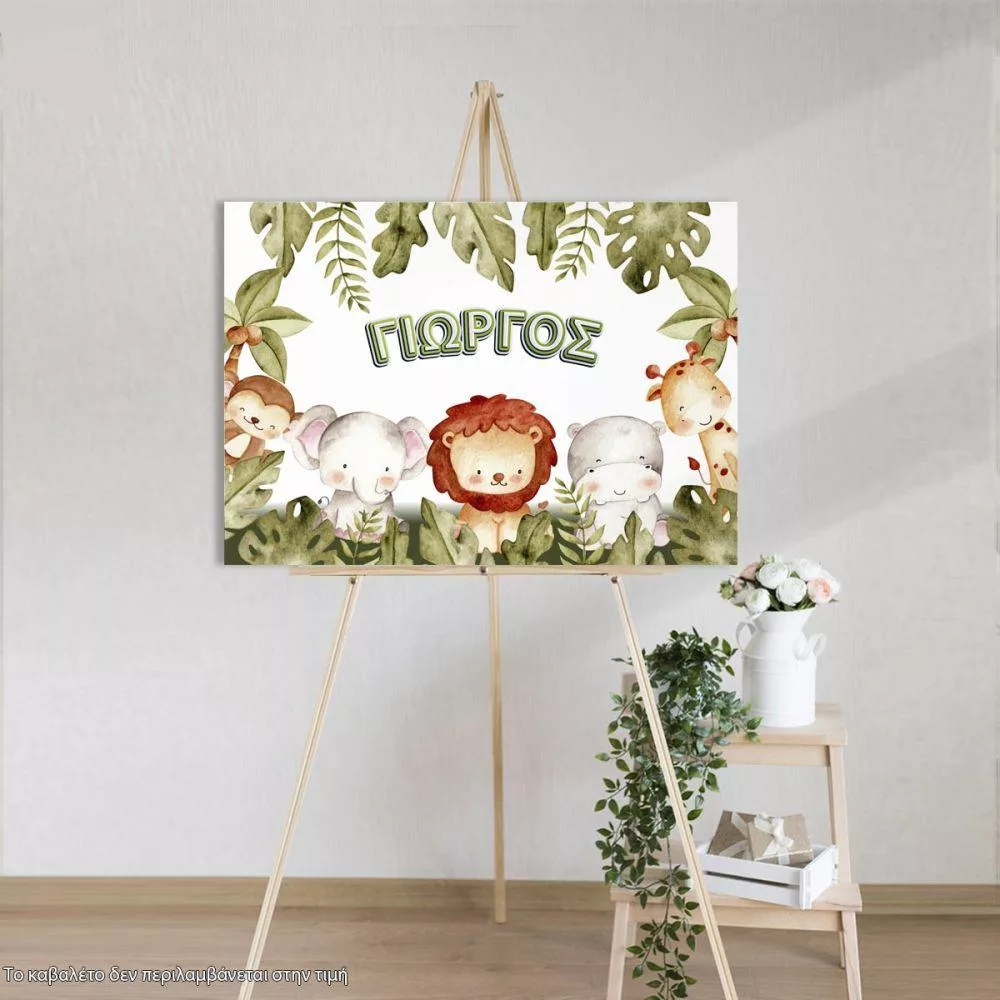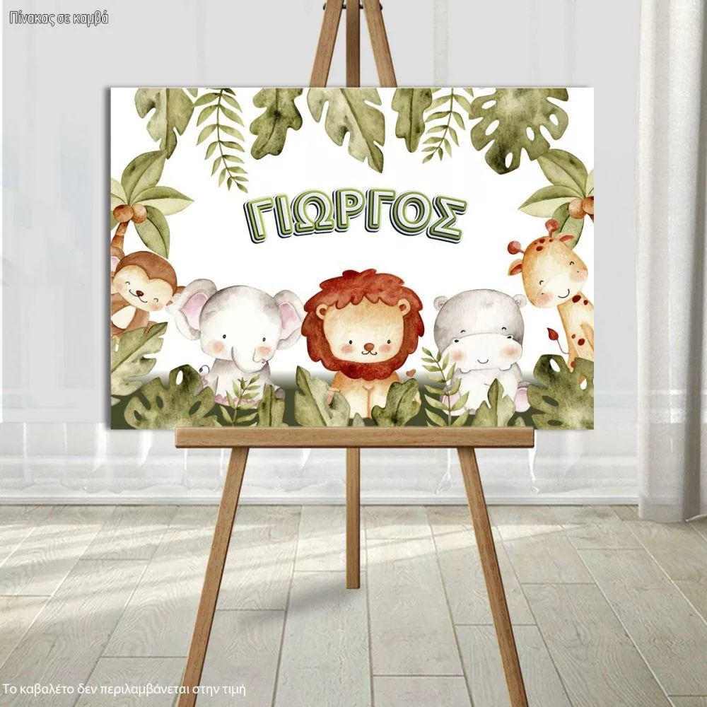 Πίνακας σε καμβά υποδοχής βάπτισης, Safari animals, προσωποποιημένος