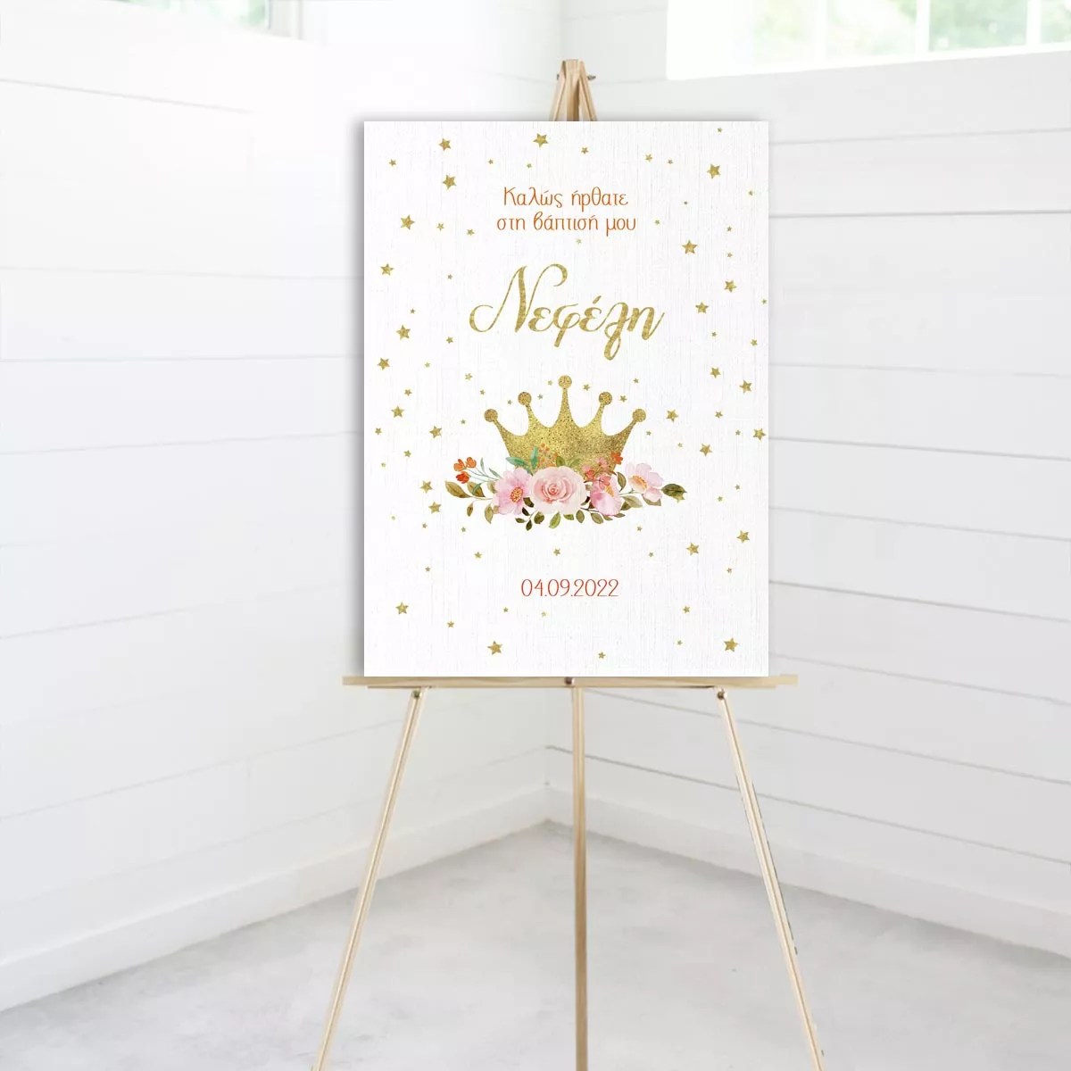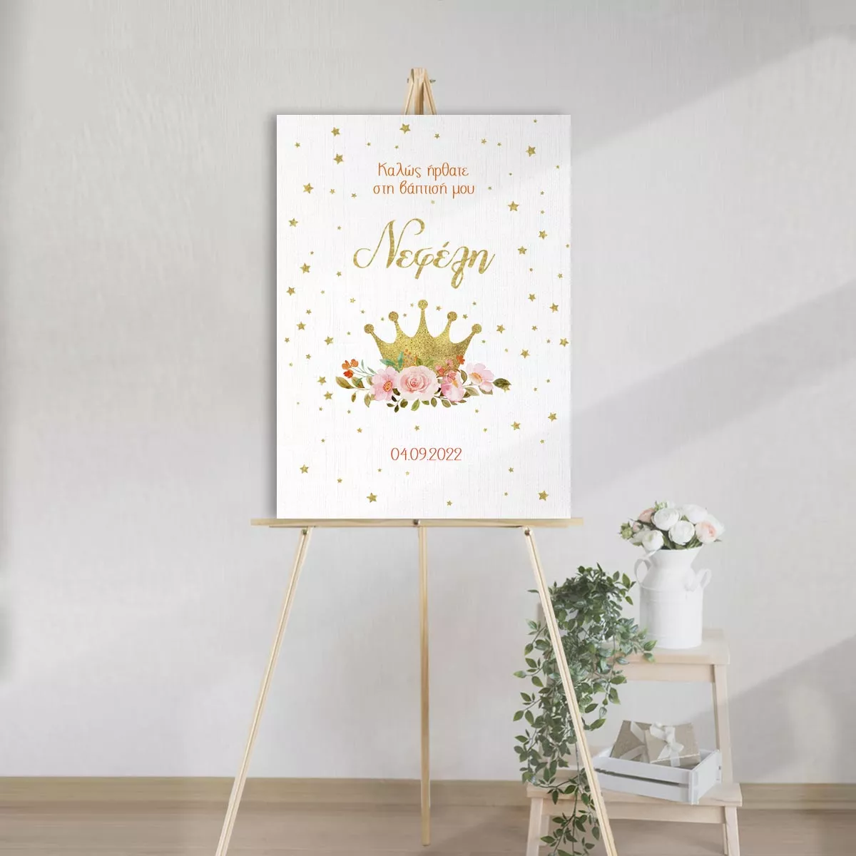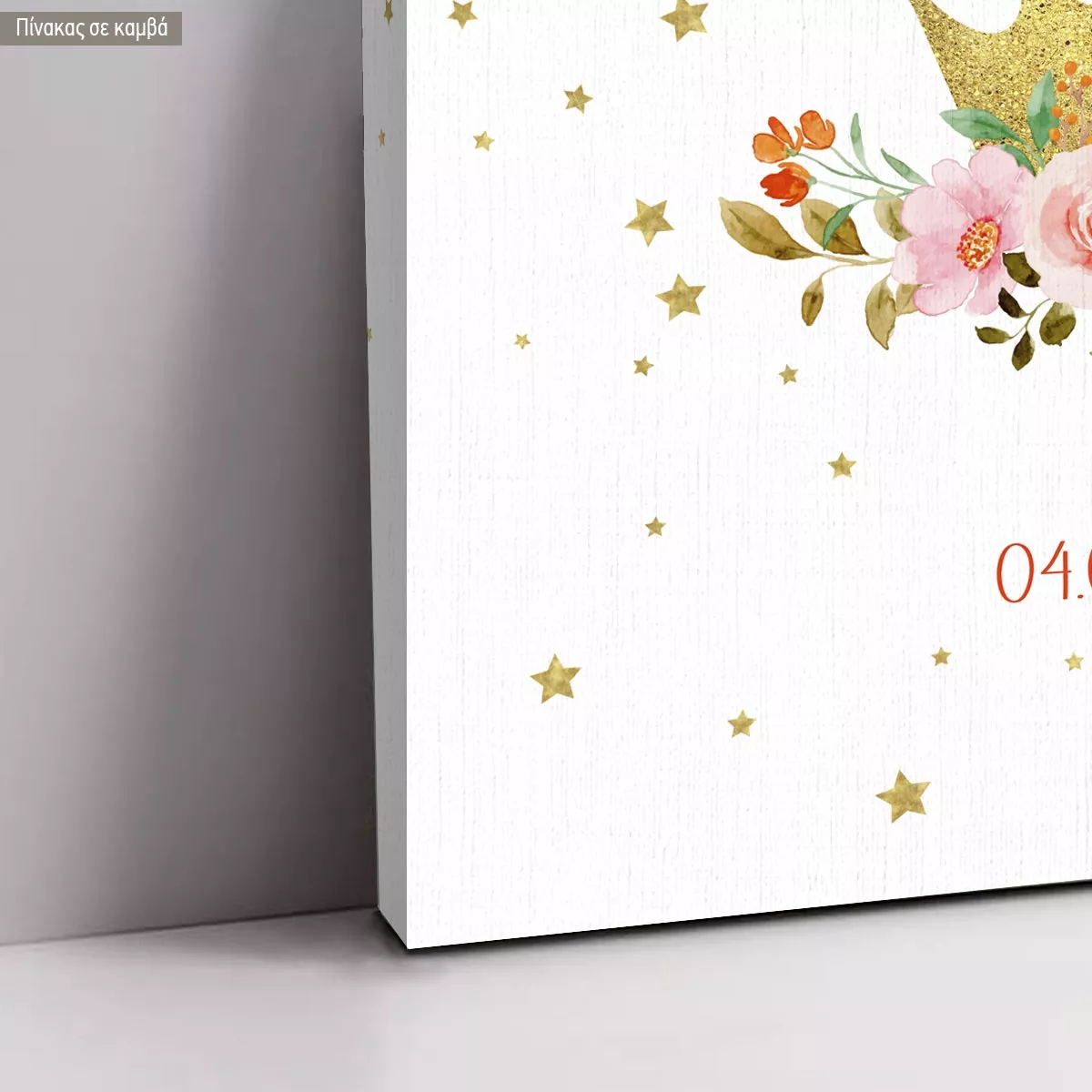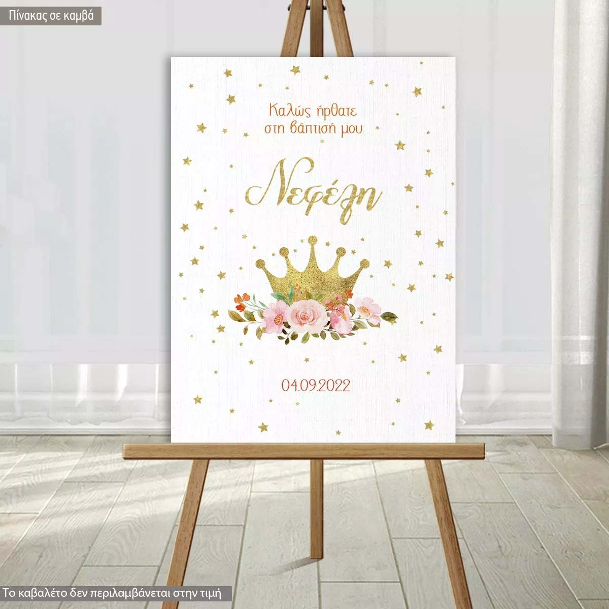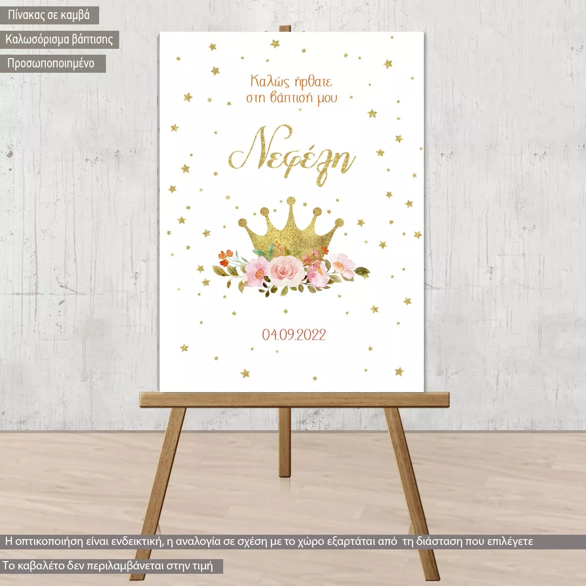 Πίνακας σε καμβά υποδοχής βάπτισης, Χρυσή κορώνα με τριαντάφυλλα, προσωποποιημένη