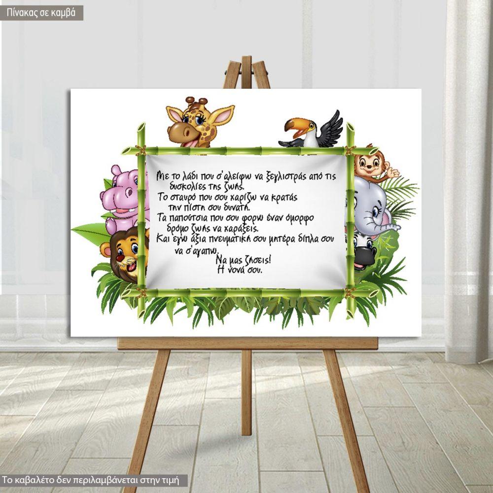 Πίνακας σε καμβά υποδοχής βάπτισης, Ζωάκια σαβάνας με κείμενο