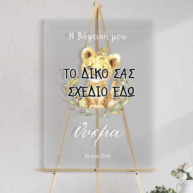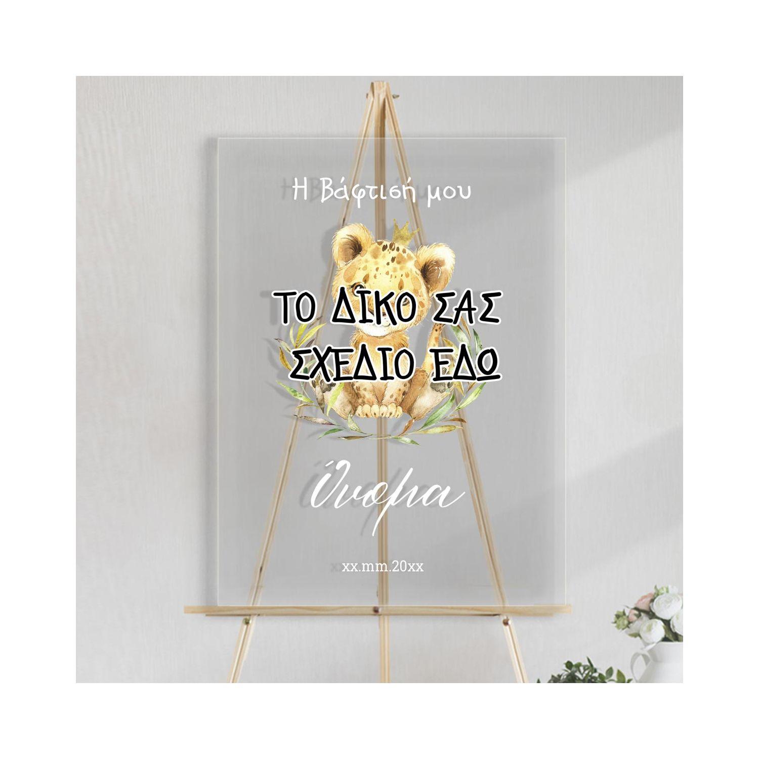 Πίνακας Plexiglas διάφανο, για υποδοχή βάπτισης, εκτυπωμένο σχέδιο προσωποποιημένο
