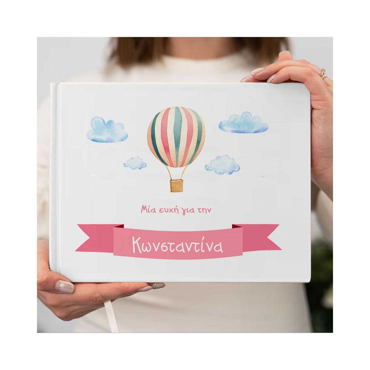 Βιβλίο ευχών, Αερόστατο watercolor με όνομα, Ροζ θέμα 2