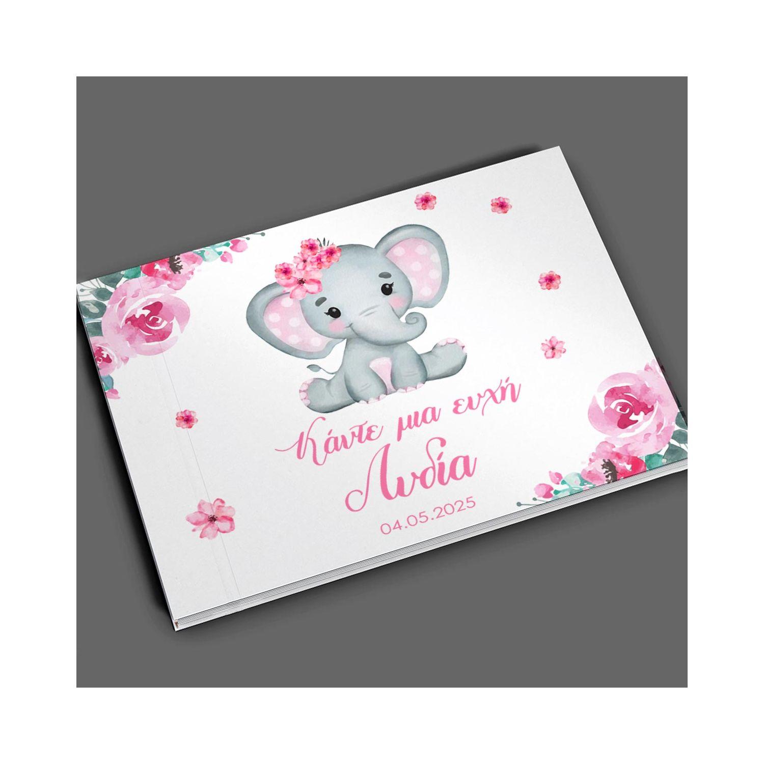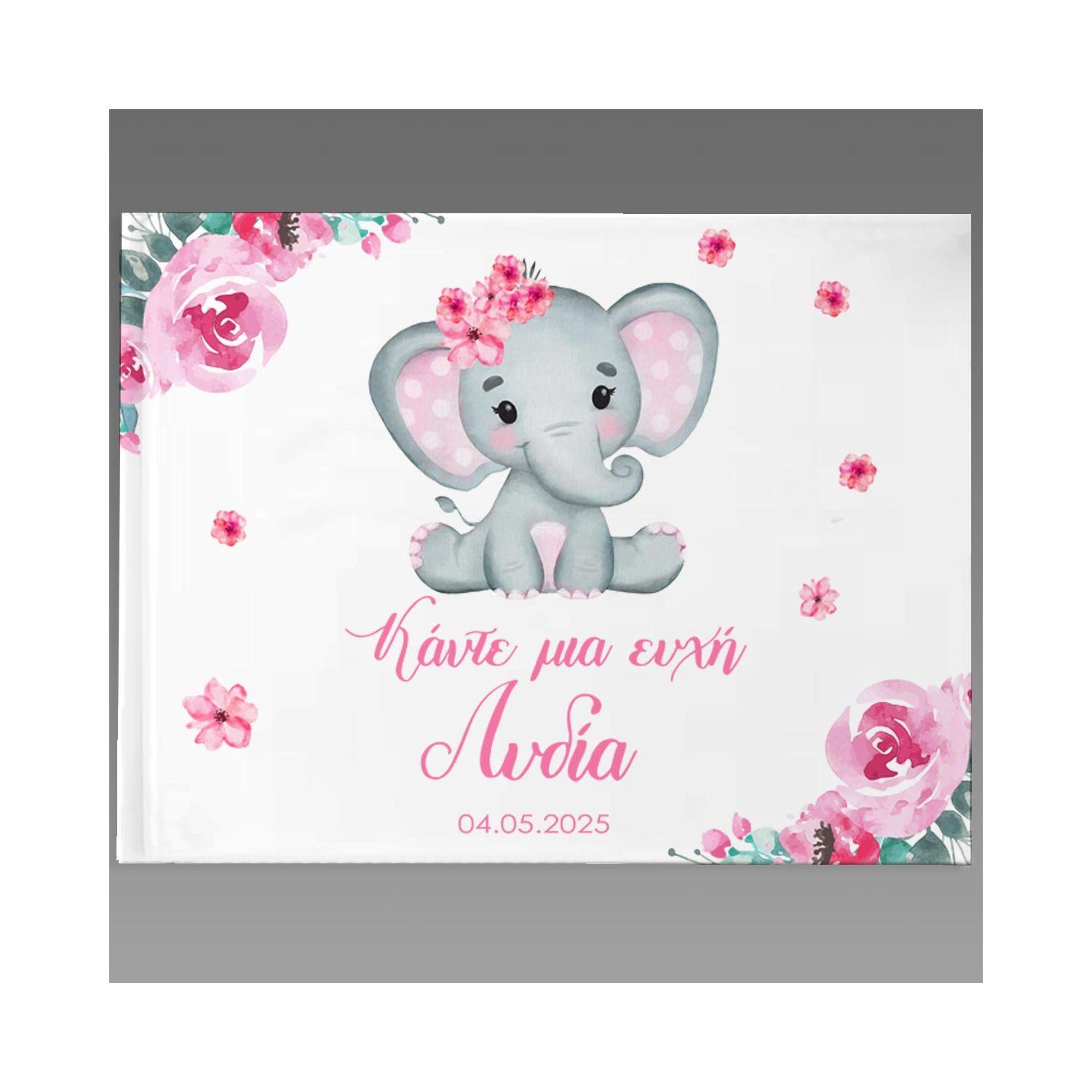 Βιβλίο ευχών, Ελεφαντάκι ζωγραφιστό girly με λουλούδια