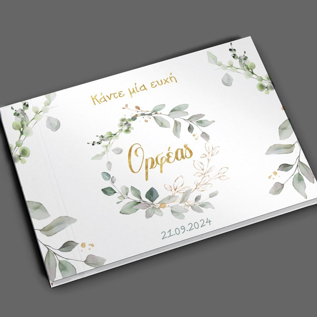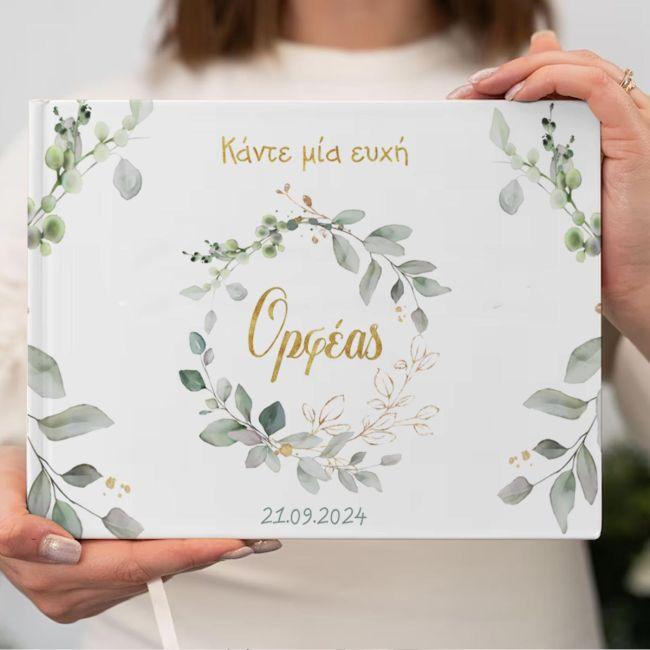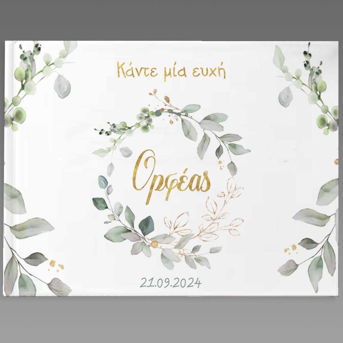Βιβλίο ευχών, Vintage ζωγραφιστά φύλλα και λουλούδια, χρυσό όνομα