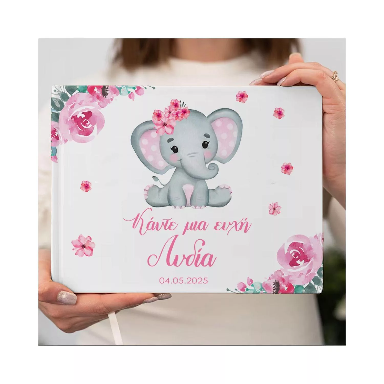 Βιβλίο ευχών, Ελεφαντάκι ζωγραφιστό girly με λουλούδια