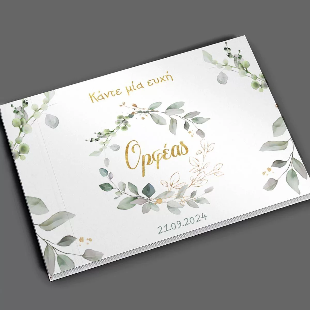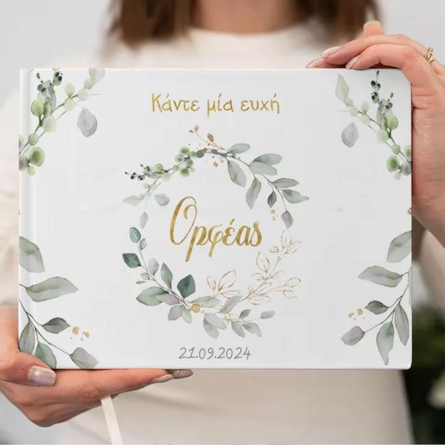 Βιβλίο ευχών, Vintage ζωγραφιστά φύλλα, χρυσό όνομα