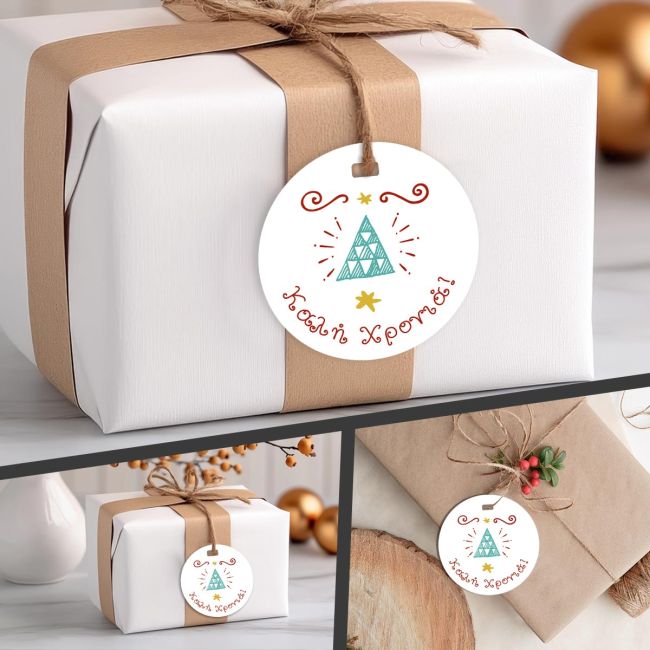 Καρτελάκια Καλή Χρονιά, ζωγραφιστό δέντρο