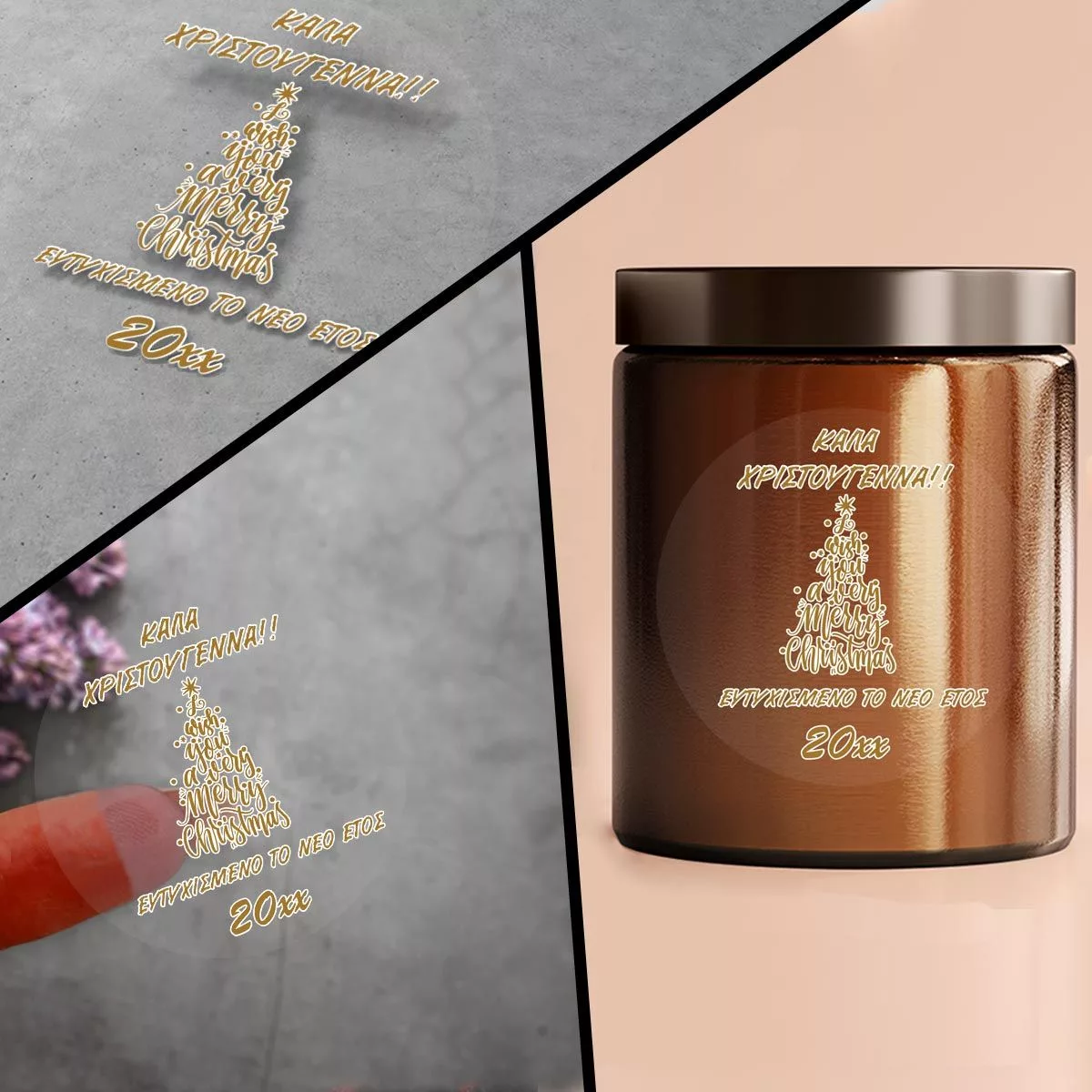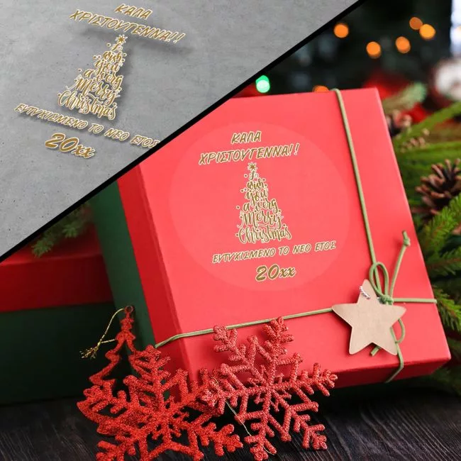 Christmas sticker label, Merry Christmas words tree II transparent