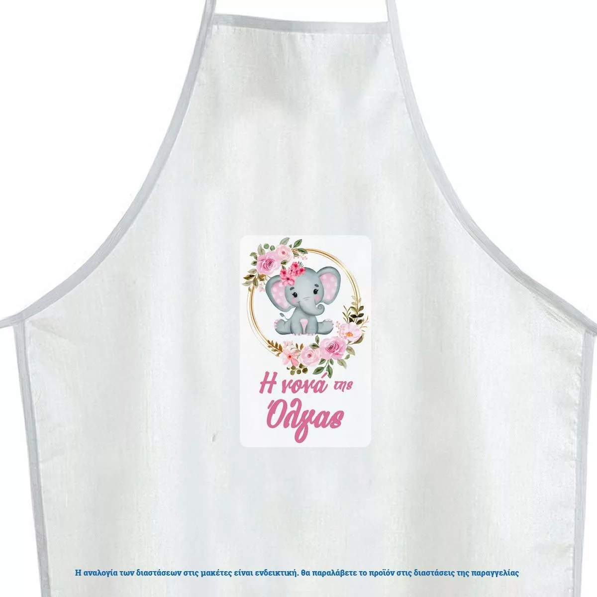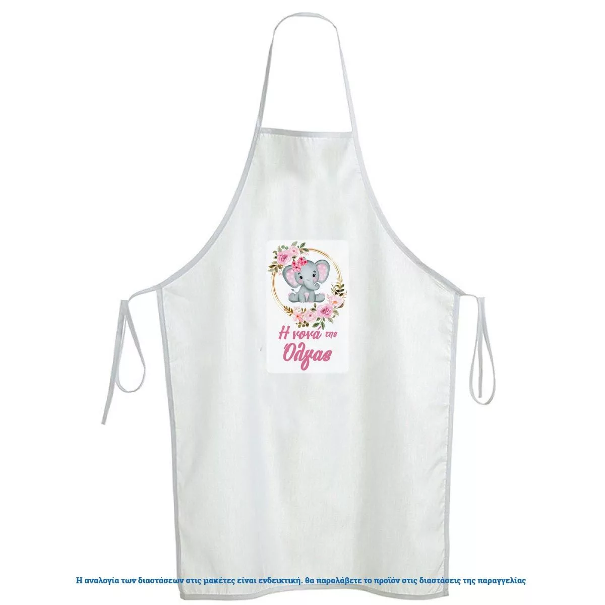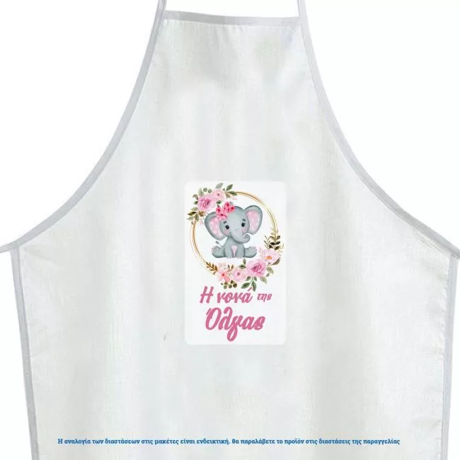 Christening apron printed for godparents, watercolor Elephant girly with flowers
