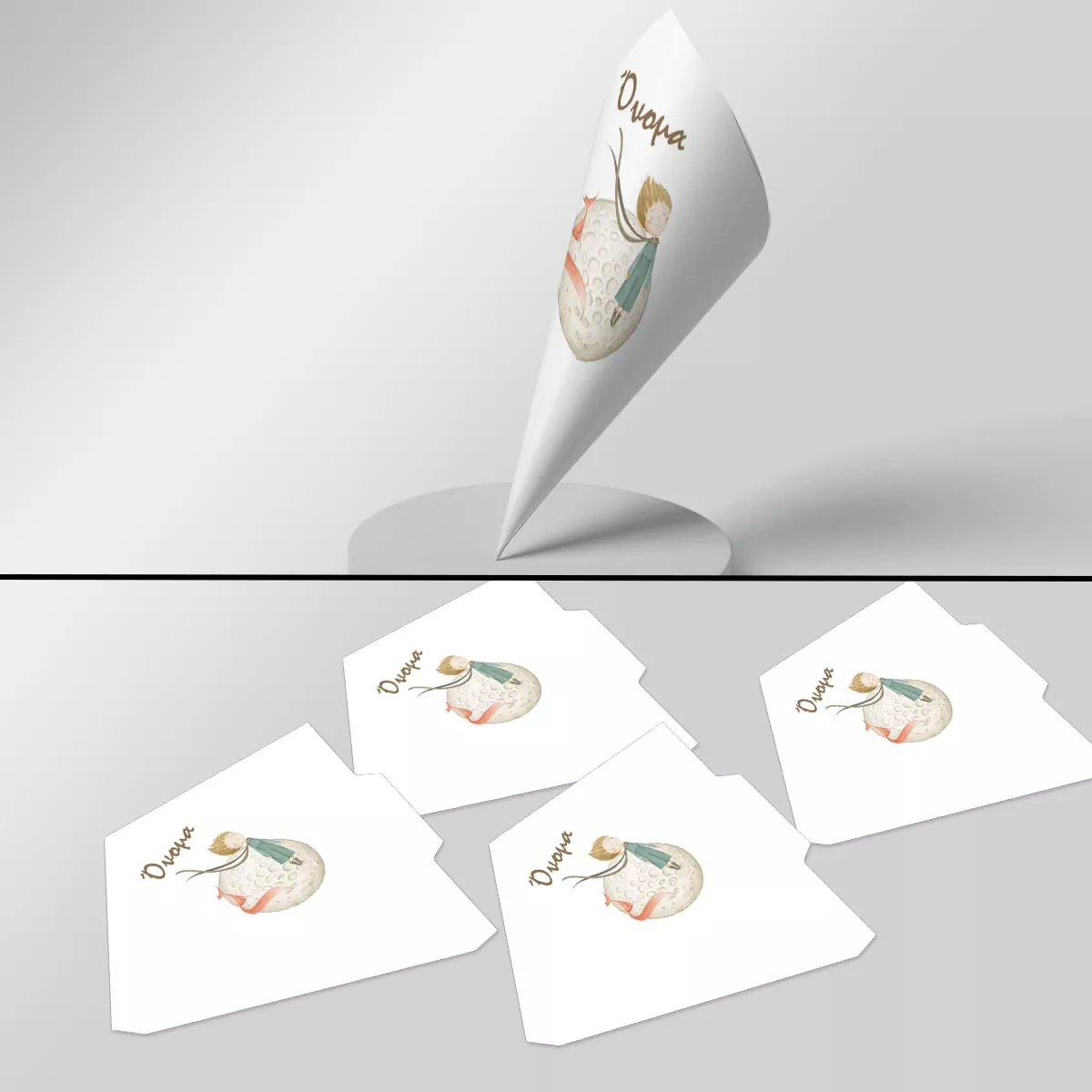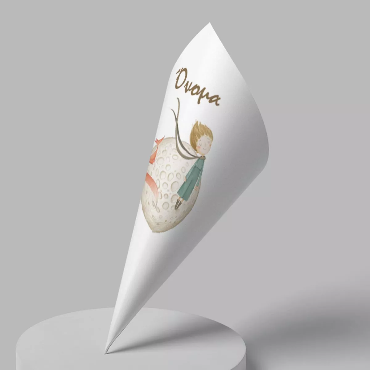 Don't forget to save your customization to be able to add to cartOffer your guests a sweet memento from the baptism with these unique candy cones. The Little Prince theme is rendered with an artistic and minimalist touch, creating an atmosphere of fairytale innocence.