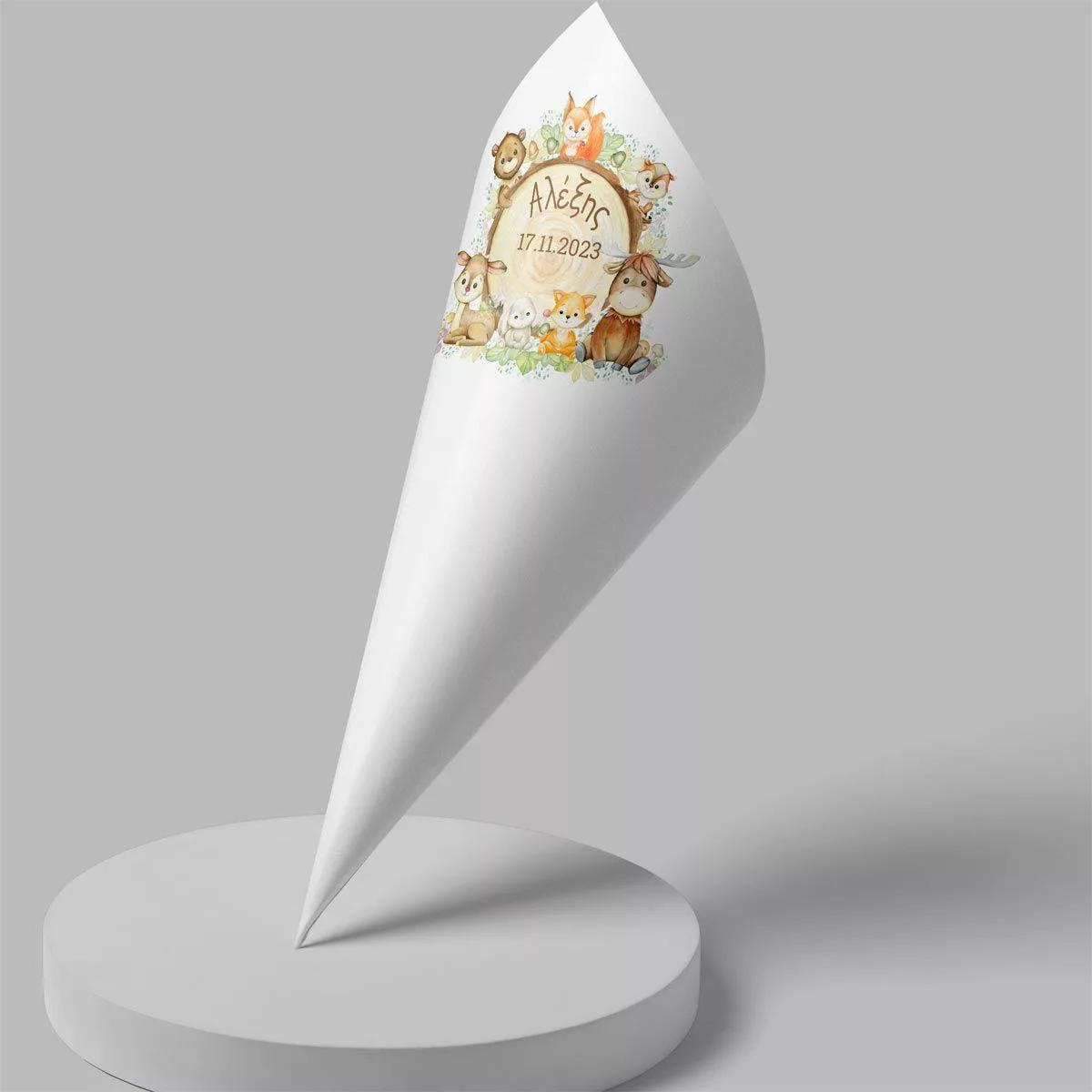Paper candy cones Forest animals on a trunk