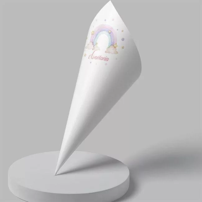 Paper candy cones Rainbow painted with clouds, personalized